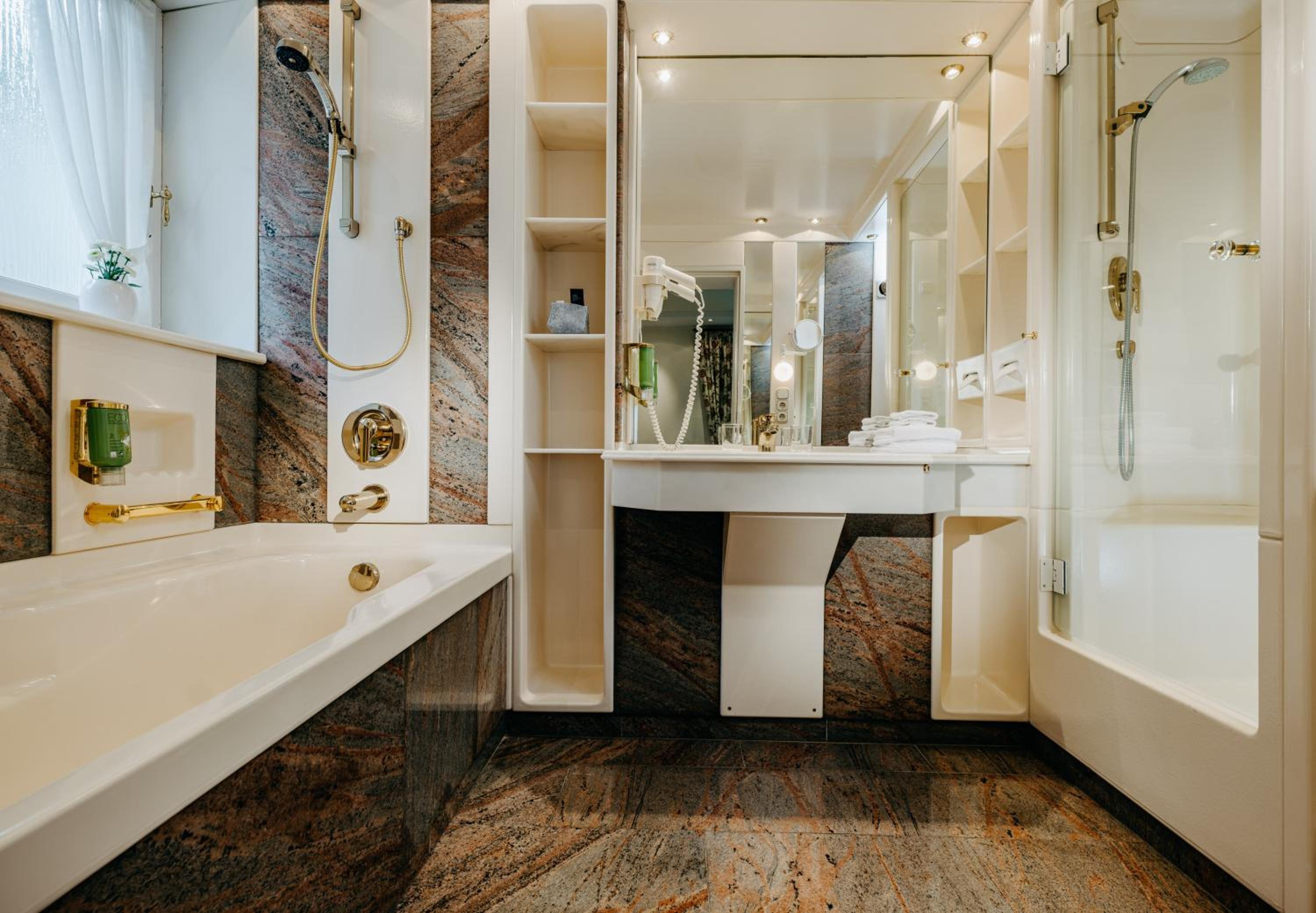 Das Hotel ist von außen als auch von innen rustikal. Passt perfekt zum Namen und ist super schön bis ins kleinste Detail gestaltet. Das großzügige des Zimmer war sehr angenehm. Im Badezimmer gab es super viele Ablagen für die persönlichen Sachen wie Waschtasche und Co (beim oder auf dem Waschtisch als auch in der Dusche)
