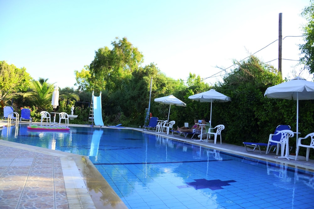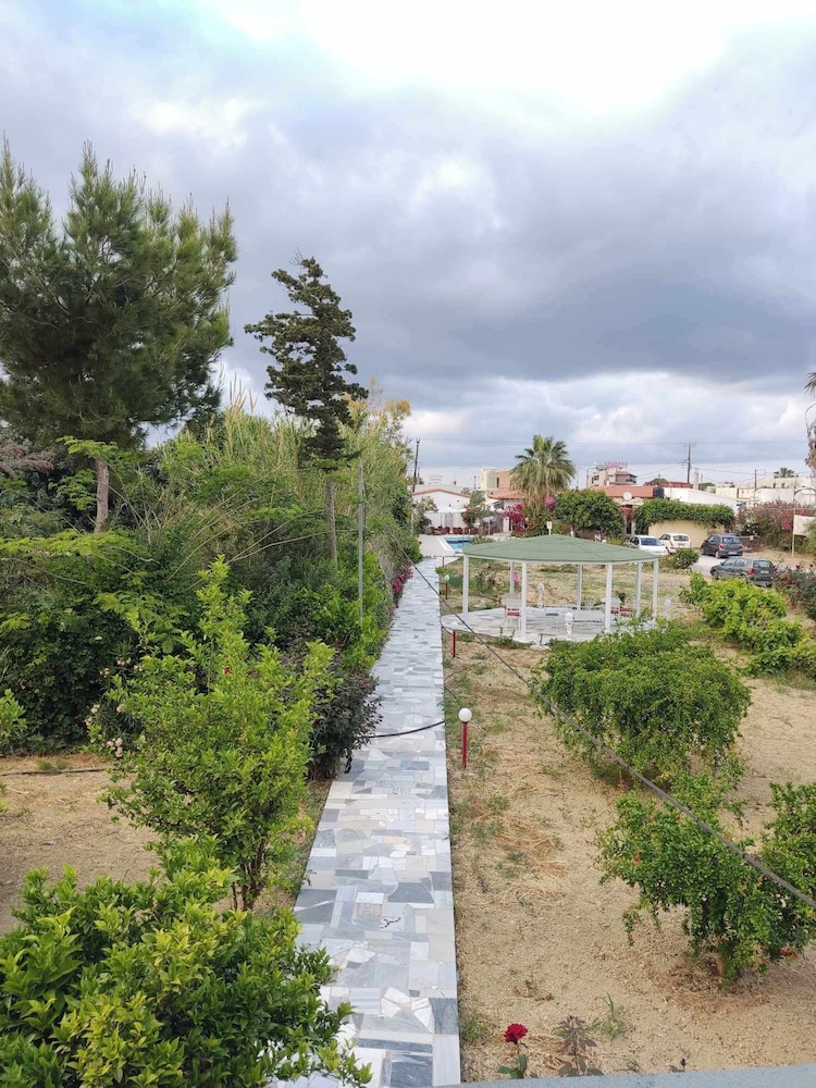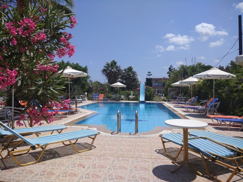 While quite run down as others have mentioned, it was still a good value for the $. While they do have AC there is a governor on it and it does not go lower than 25. In the hot summer days this is not that cool. The pool was great, though the slide does not have water running down it so it's not functional. It was about 4 mins to the beach which was great and on anice strip. Though you are quite far from the city center, the bus is easy to navigate though not that frequent. Irini, when she was there, was very helpful and spoke great English.
