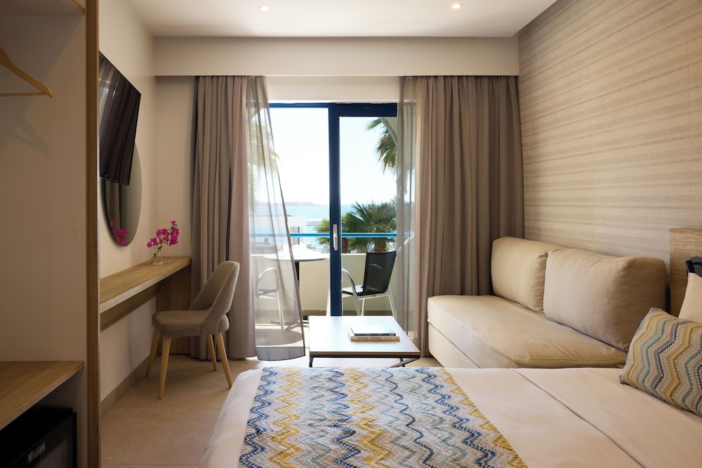 A friend and I visited the hotel at the end of September for a week and had a fantastic time! The room was modern, clean and spacious with a wonderful sea view capturing the sunrise and sunsets perfectly. In general the food was basic, with exception of the tasty pizza that was prepared daily. The inclusive pool bar provided local beers & spirits, as to be expected, but the beach bar served up some delicious cocktails by the highly entertaining Stelios! Of particular note was the beach party organised by the hotel on the Monday evening, the sangria and salsa dancing provided a great night with an excellent atmosphere.