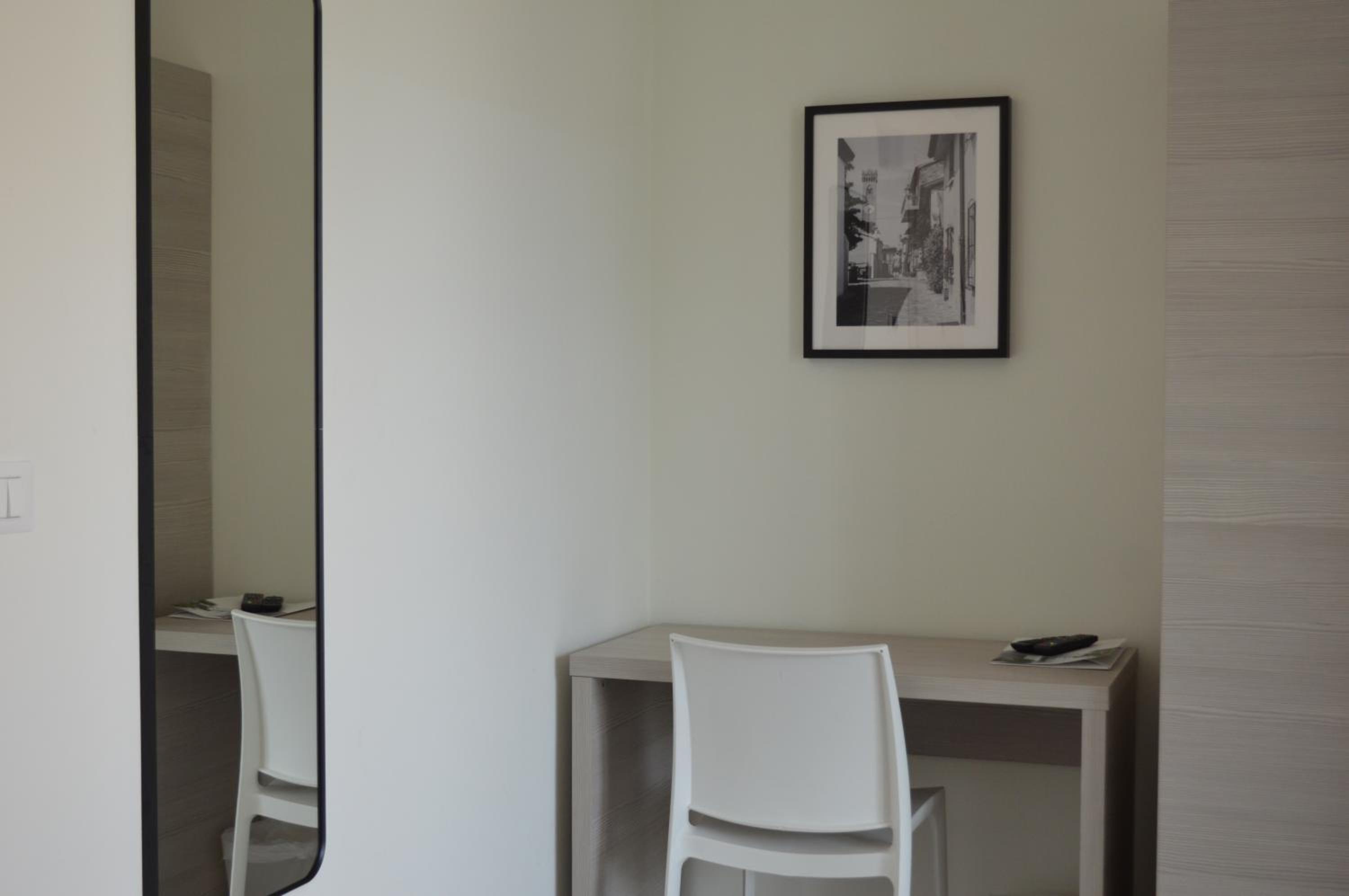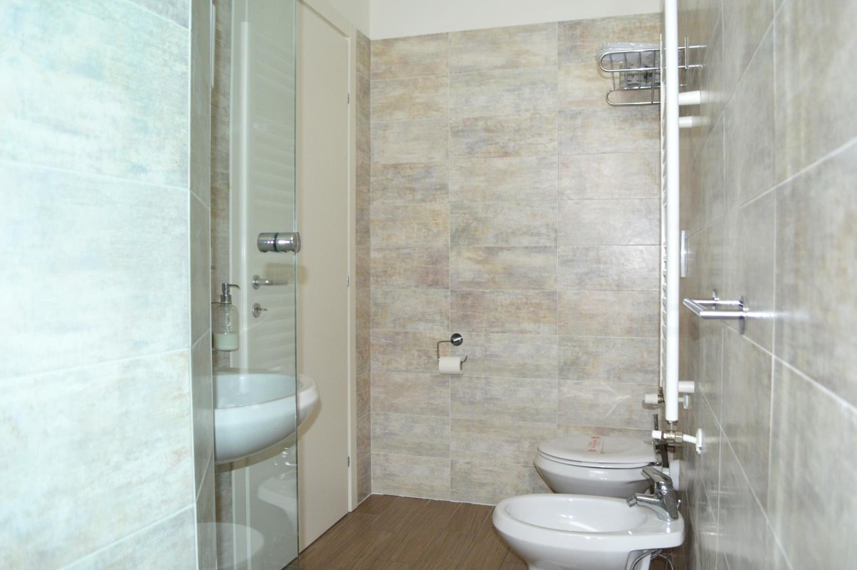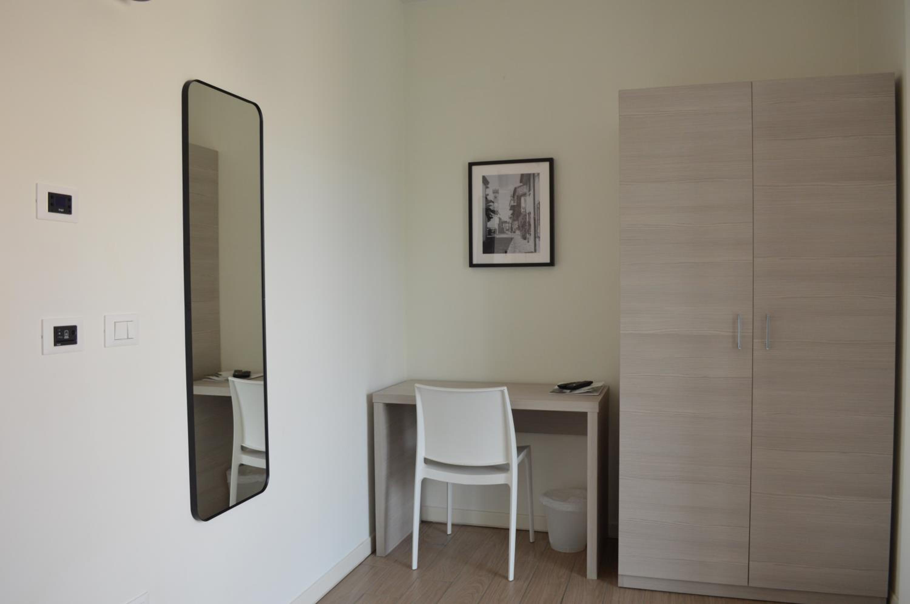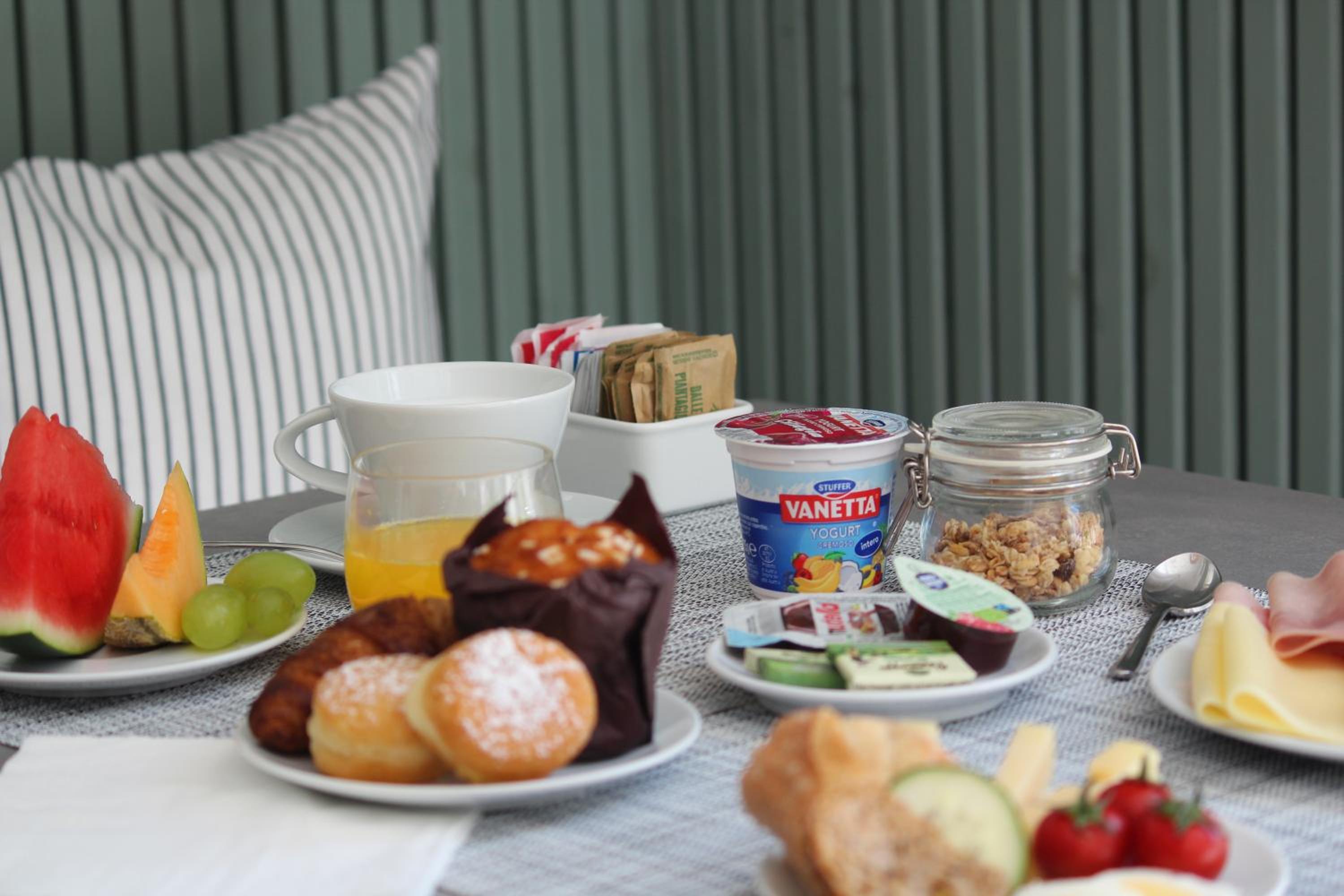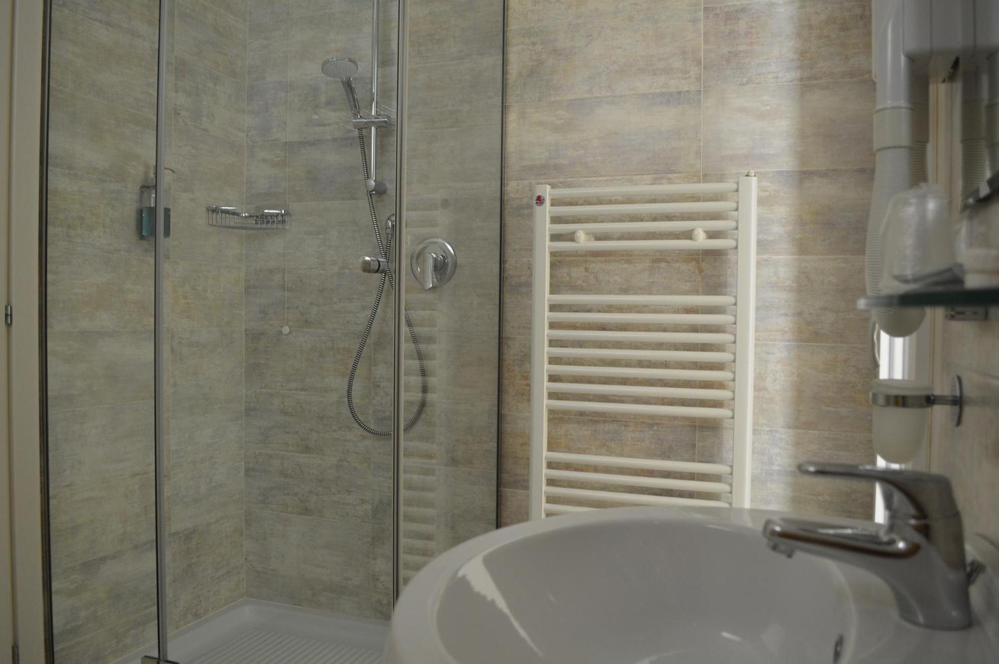 Colazione buona, posizione centrale vicina alla Fiera, camera ampia, luminosa, ottimo terrazzo con solarium, bagno grande e comodo. Personale molto gentile e disponibile. Comodità presenza garage, anche se al costo di 15 euro a notte.