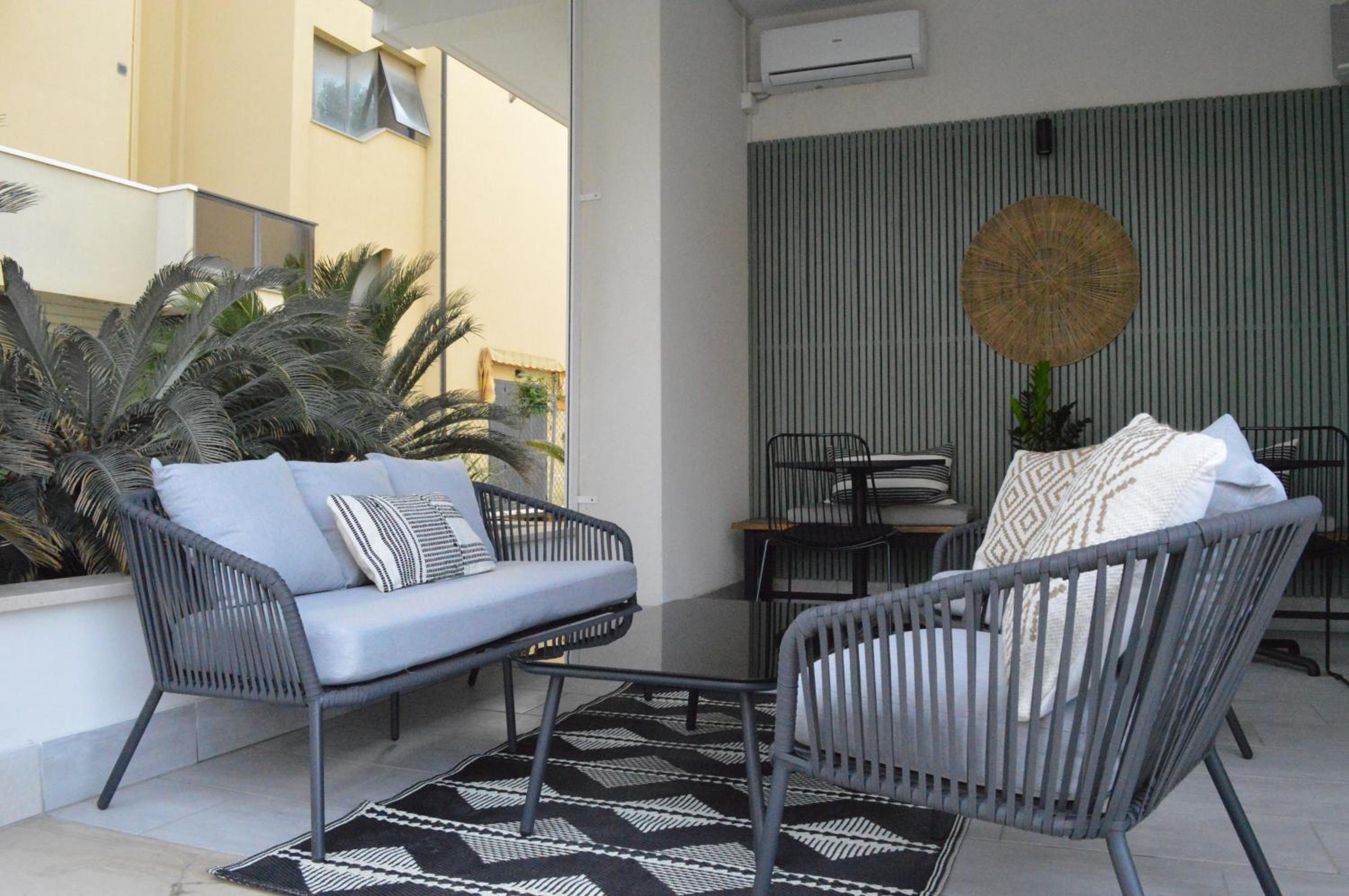 Each air-conditioned room is equipped with modern amenities such as a flat-screen TV, balcony, and small fridge, ensuring a comfortable stay for all guests.