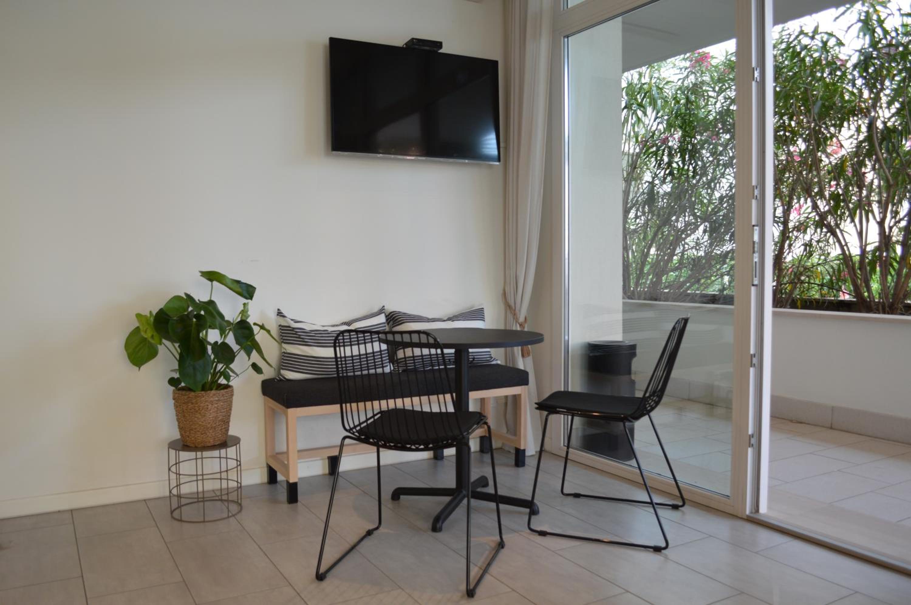 Dichtbij het strand, kamer was heel netjes en aangenaam, met een ruim terras. Het ontbijt was gevarieerd en verzorgd. Heel vriendelijk personeel.