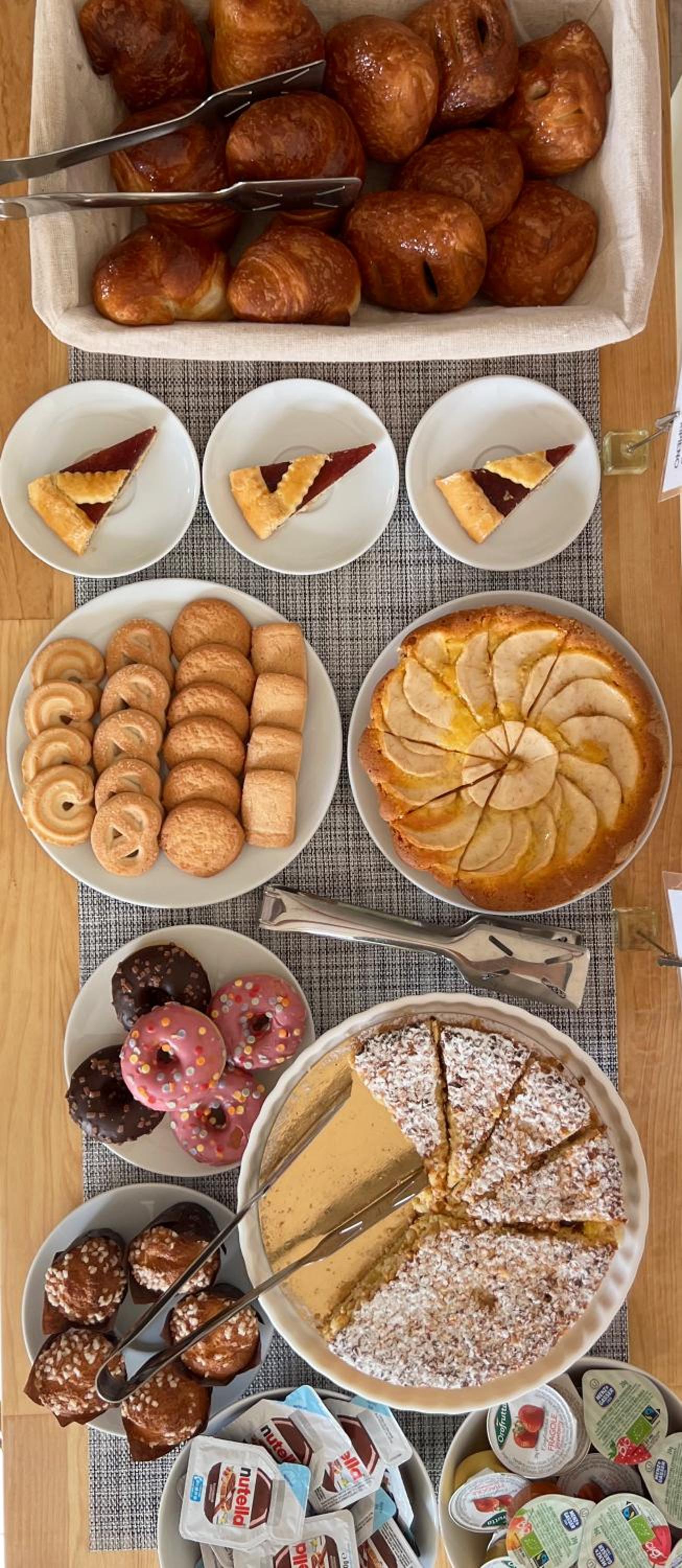 Start your day with a delightful sweet and savory breakfast, including a selection of hot drinks, croissants, and cold meats, setting the perfect tone for your day ahead.