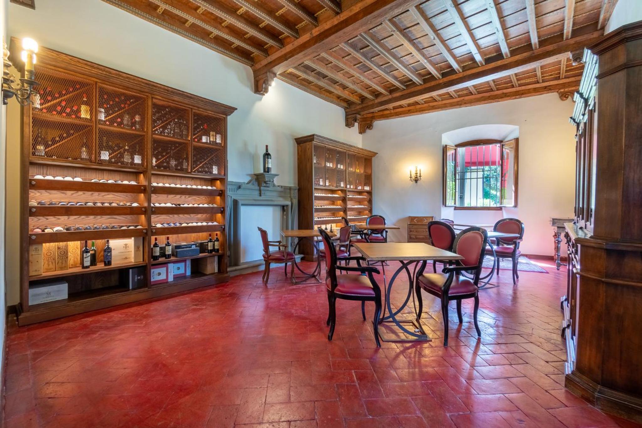Once the residence of Duchess Anna D'Orleans, this property exudes elegance and sophistication. Guests can unwind in the refined lounge area, complete with an inviting open fireplace, TV, and a graceful piano, adding a touch of grandeur to their stay.