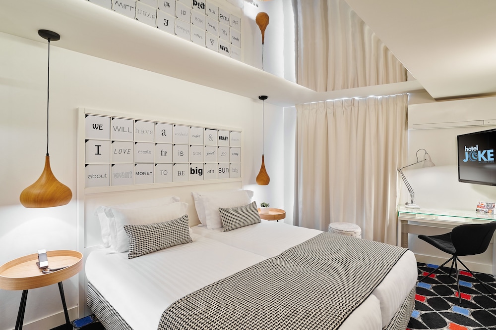 Just fell in love with the Joke. Great client service, nice clean tiny rooms, great area. Price-service match is absolute.