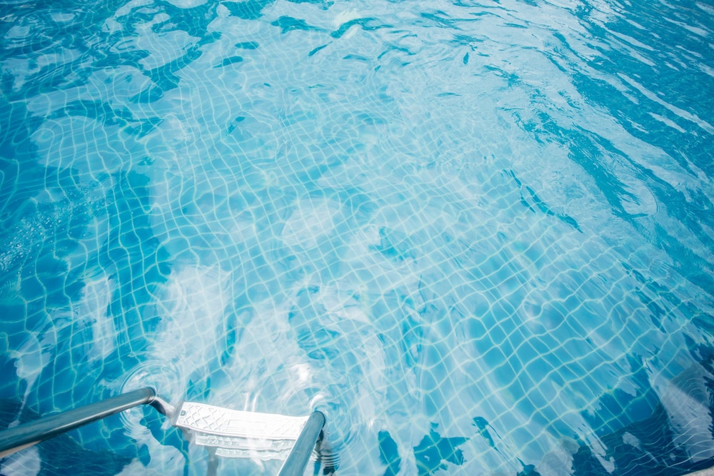 Pool area meh, with no service and few chairs.