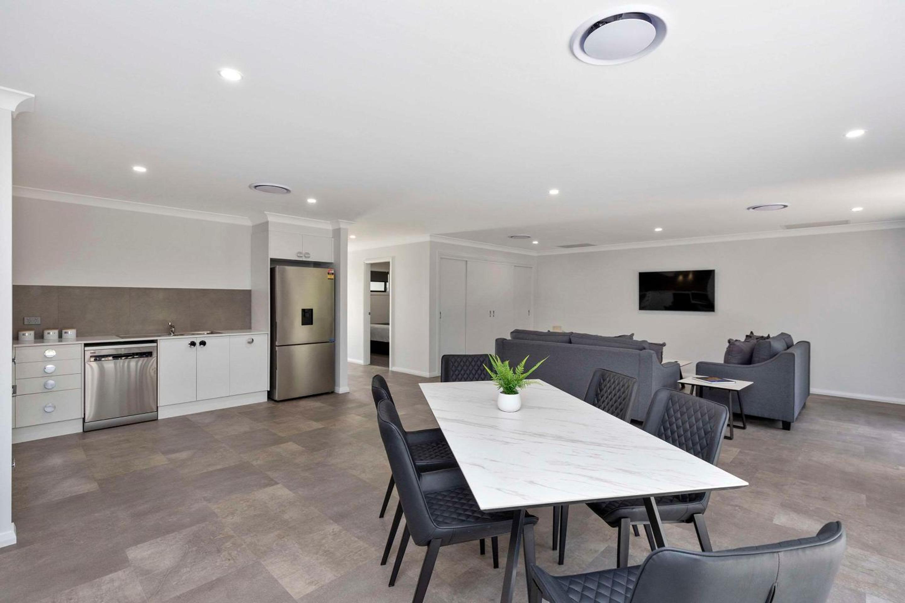 We stayed in the 3 bedroom apartment and we were shocked with how spacious and fitting it was for a large family! It had everything and it was so clean! Great location and will definitely stay again as we are regulars to Tamworth area.