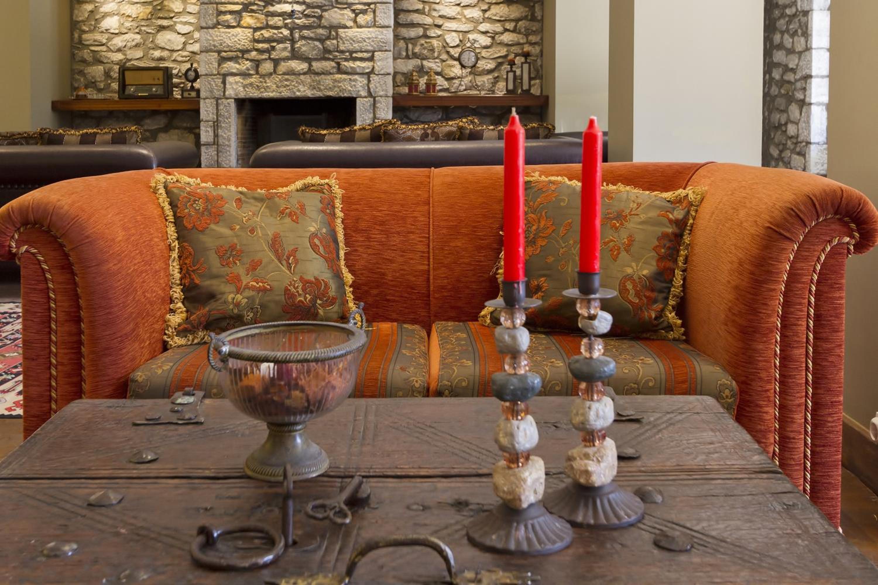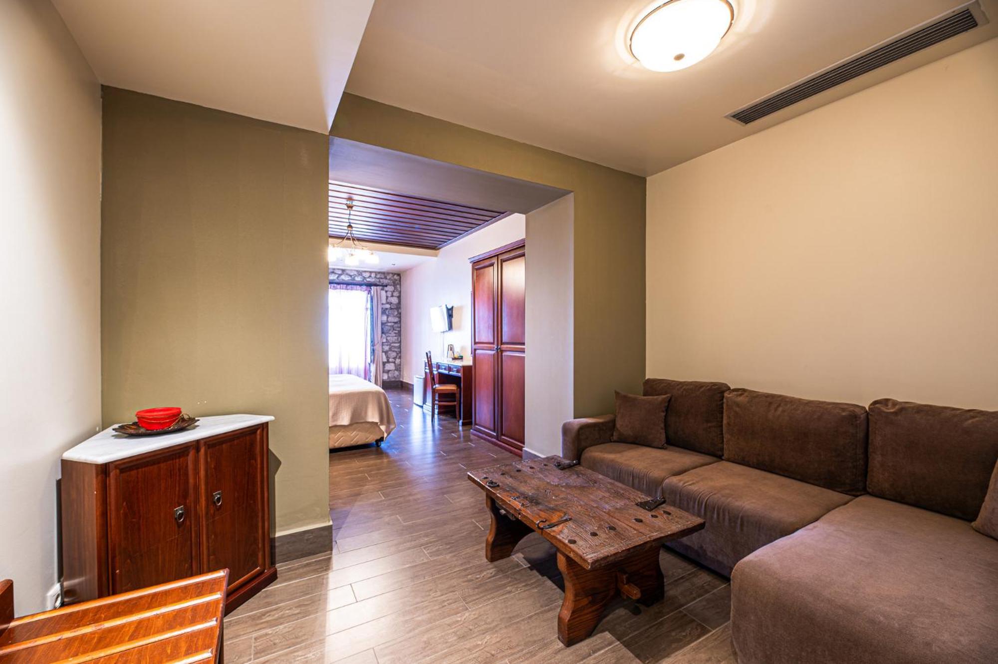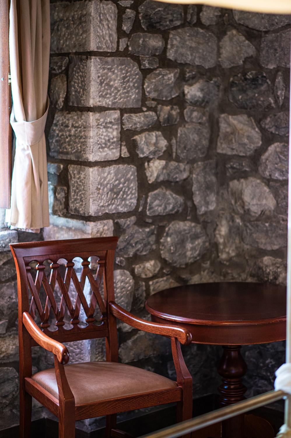 The candlelit lounges and balconies overlooking the sea offer a serene atmosphere for relaxation and enjoyment. The rooms and suites, designed with stone and iron materials, embody the local architectural style, with unique features like 4-poster beds and stone walls.
