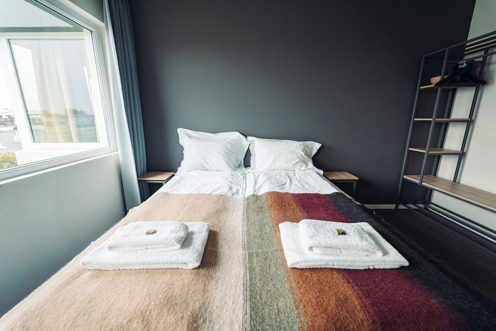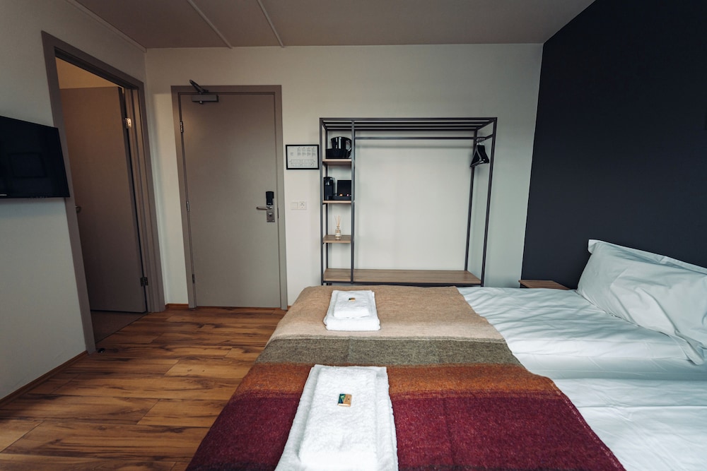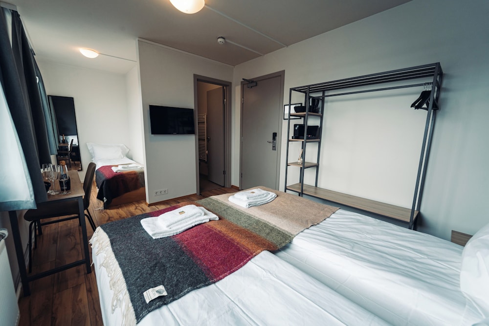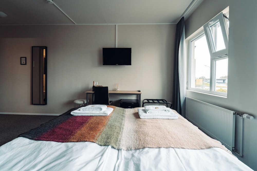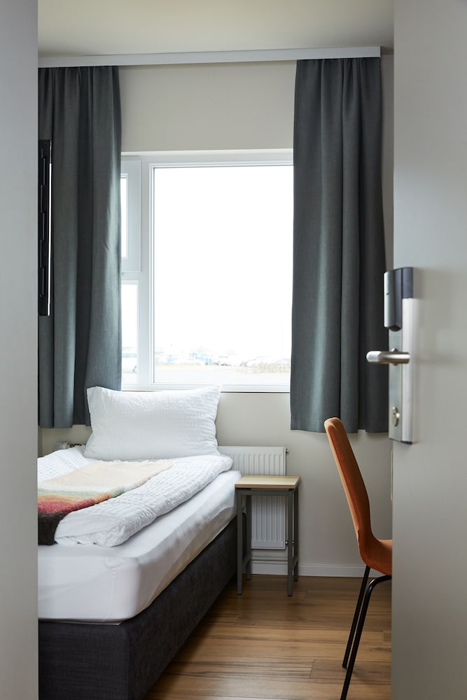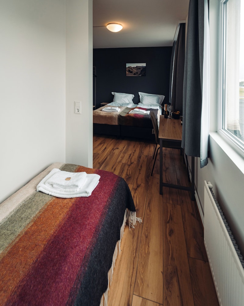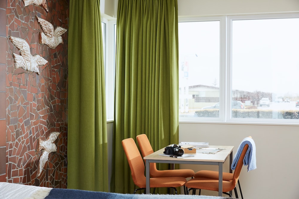 Bit of a disappointment after so many great hotel stays in Iceland. Rooms were quite humid after using the shower (which was contained by two big plastic curtains) and we needed to keep the door open to let the room vent out. Decor was in rough shape... clearly well used. No closet. Small.