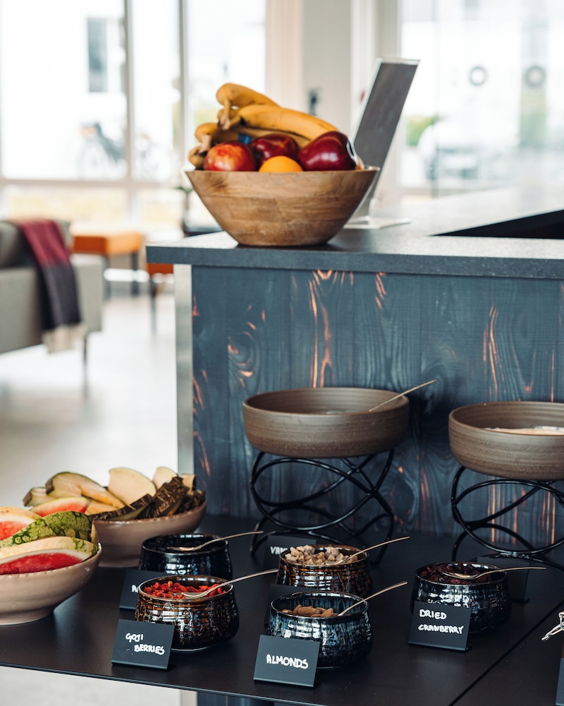 Very nice and clean hotel. Rooms are small but simple and serve the purpose. Free breakfast is a plus since nothing is open around and you definitely want to get going early to venture out to see so many beautiful places around. There is a supermarket, netto, is right next and very convenient to have. Only complain is that shower was cold even turned up to hot all the way. Water pressure was low. Except for that its excellent location near to the volcano and nice place to stay.