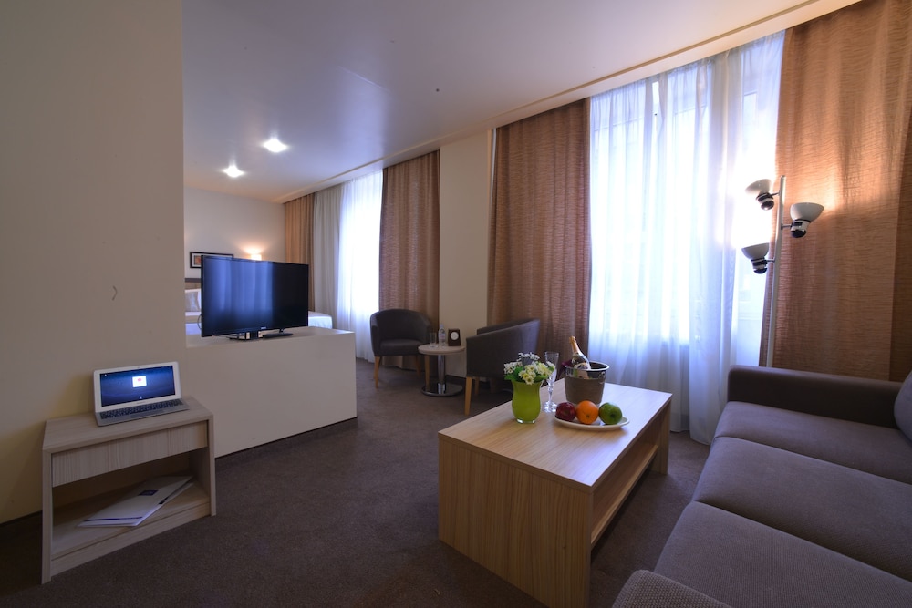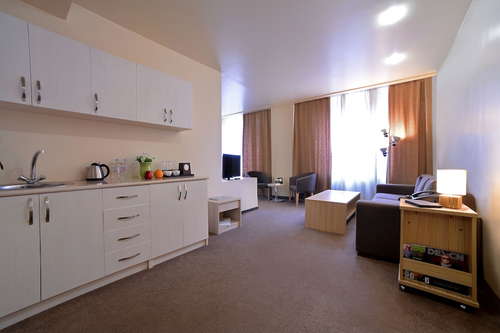 If you want to be close to Republic Square this hotel is a good choice. The rooms are suites, so you get a small kitchen and decent living room and good size bedroom. But get ready for a not so nice view... overlooking abandoned half built buildings... although very close to Republic Square you have to walk through a shady alleyway/street to get to the hotel. I felt safe, but not aesthetically pleasing. Lastly based on the pictures of the other hotels, this one seemed to be the best in its price range and staff was friendly.