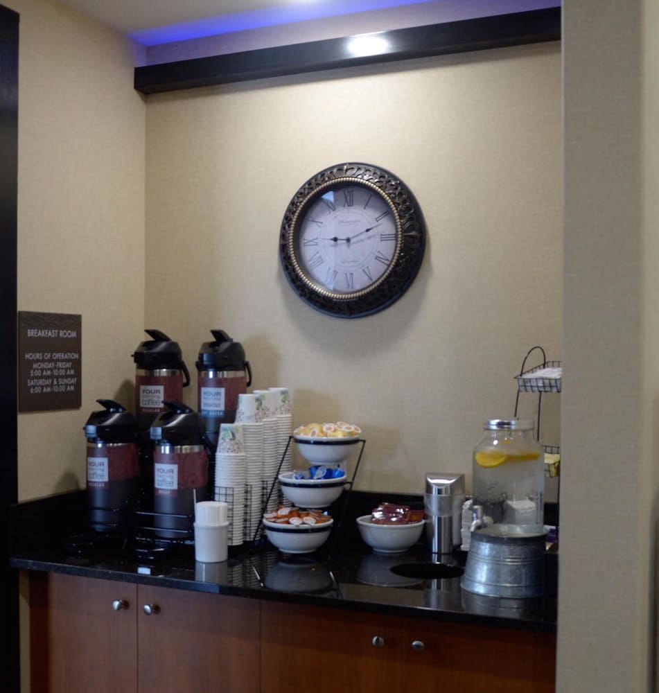 It's a bit off the beaten path so you have to watch for it. Being off the main drag also means it was reasonably quiet. The front desk seemed confused about something when we arrived and sent us to an un-made room, but that was quickly remedied. Amenities were good, staff was friendly. The included breakfast was good for the price, no complaints other than the coffee was a bit on the weak side for us. Checkout was quick. We would stay there again. One thing that irritated me was the tv setup. The control box was on the wall "behind" the tv so changing channels was really frustrating. That should be remedied.