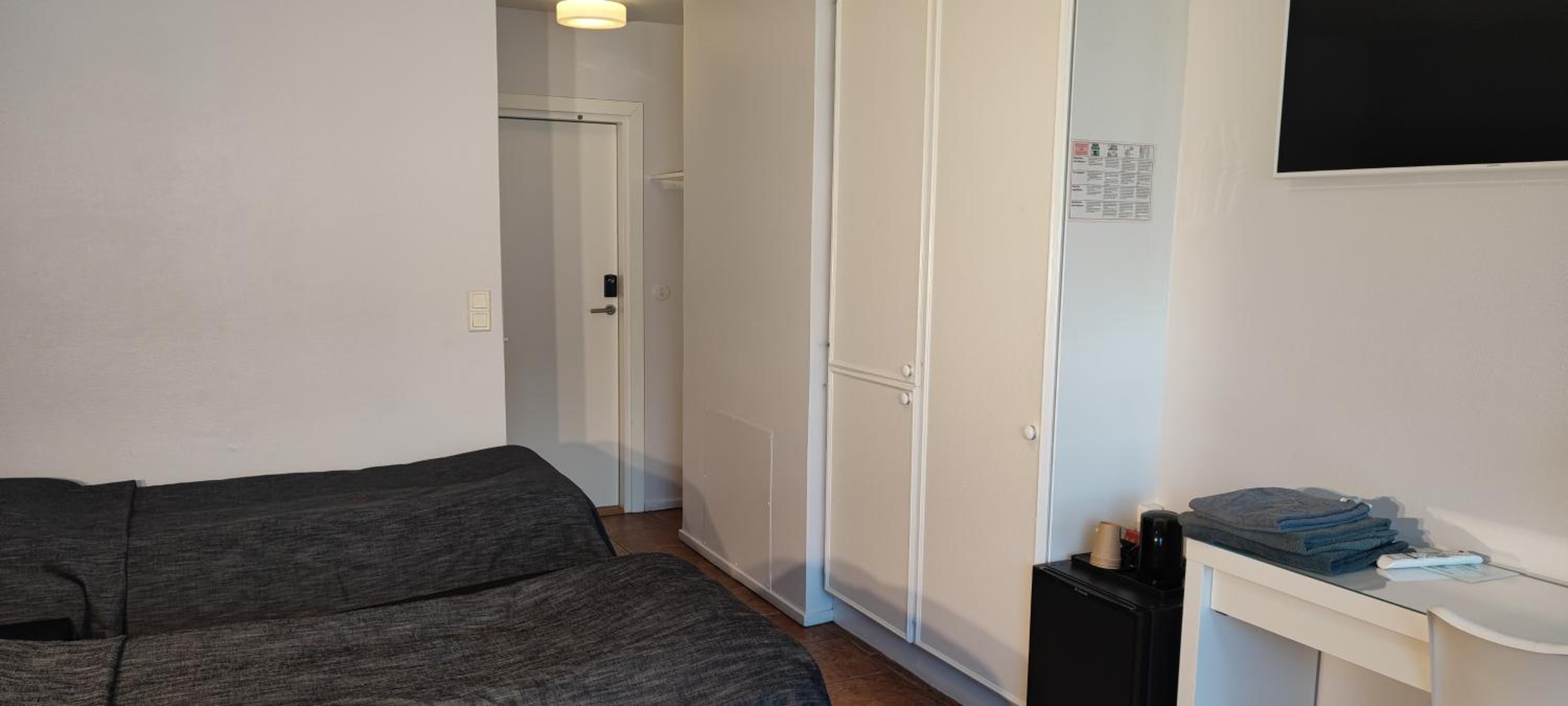 Jättebra läge. Simpelt, rent rum. Trevlig personal. Stort plus att vårt rum hade ett litet kylskåp. Har övernattat där förut och övernattar där gärna även på nästa besök till Mariehamn. :)