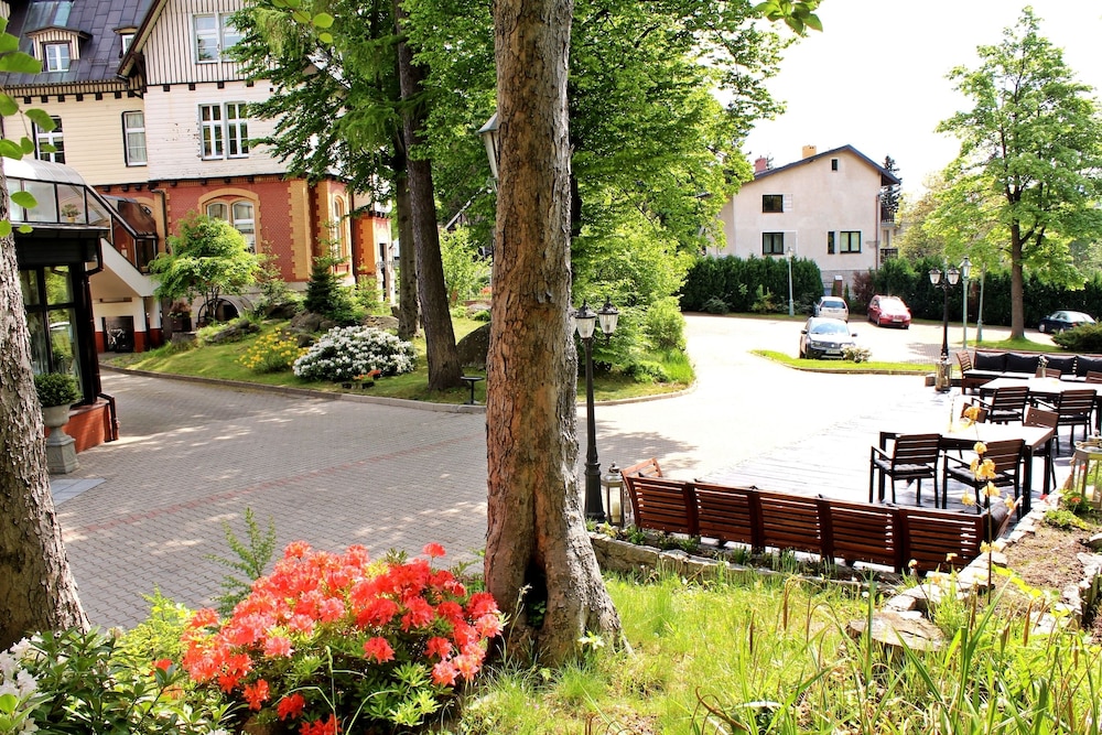Outdoor Activities and Relaxation: Enjoy the convenience of renting bicycles, relaxing on the terrace, and taking in the serene garden views at Hotel Szrenicowy Dwór.