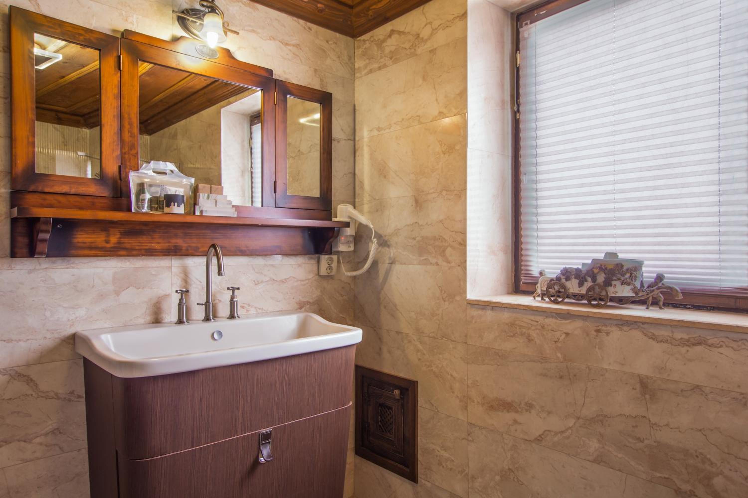Très belles chambres lumineuses avec vue sur le village et le château d'Ortahisar, beau mobilier, très belles salles de bains avec baignoire