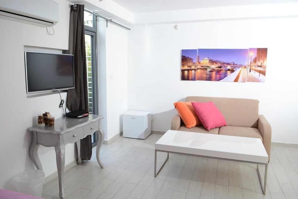 Terrible place, so bad we left after one night. The staff were unhelpful and appeared to have no record of our booking. We had paid for two rooms, of which the first was for 3 people and the second for 2. For the first room, they gave us a key to a tiny room with one double bed- obviously not suitable for 3 adults. The second room already had someone else's luggage in- clearly not secure for them, whoever they were. We were eventually given keys to rooms that were at least empty but not fit for habitation. The cupboards were broken, the baths chipped and drainage blocked, no plug in the sink, the air vents broken, the curtain rails awry, the air con not working in one room, the wifi not working at all. There was a syringe in one of the fridges. Only one room had a kettle but with no base so impossible to boil. There was rubbish around the steps up to the rooms that we had to climb around. The Expedia advert said breakfast could be purchased on site but this turned out not to be an option- we had to walk 20 mins off site to find anything to eat. We spent one night 'sleeping' (not) on a combination of the sofas and such beds as were in our rooms before leaving this dirty, unpleasant place.