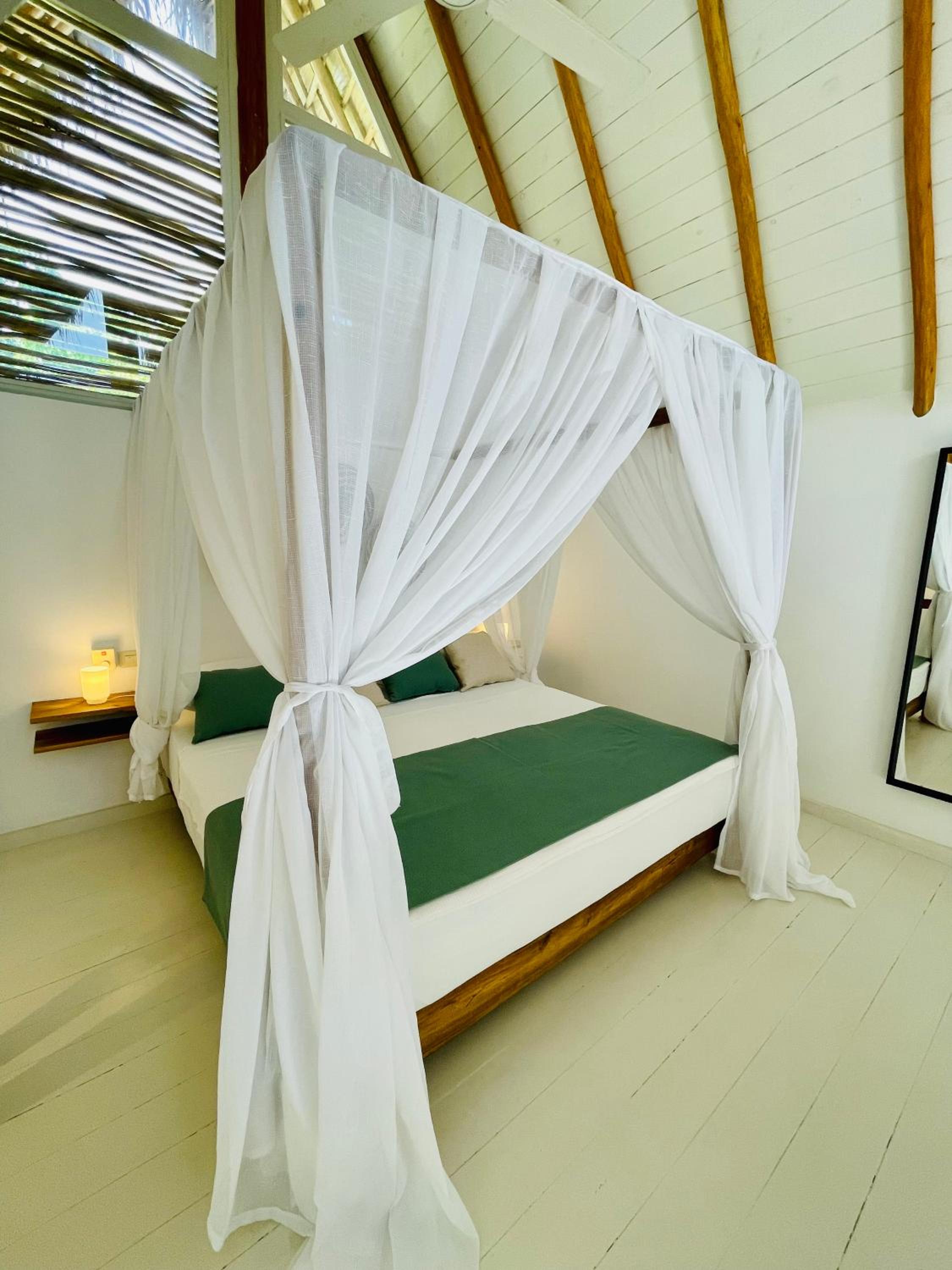 Infelizmente nós tivemos uma experiência bem ruim. A propriedade está cheia de pequenas rãs que fazem muito barulho durante a noite toda. Mas MUITO mesmo, é impressionante. O isolamento acústico do bangalô é terrível e nem com protetor auricular conseguimos dormir. Foram 3 noites em claro. Assim que amanhece o bangalô fica totalmente claro.