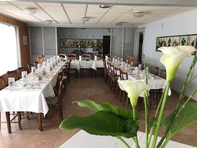 Nappe sur les tables dans la salle à mangerpour les repas du midi et soir seraient plus agréables