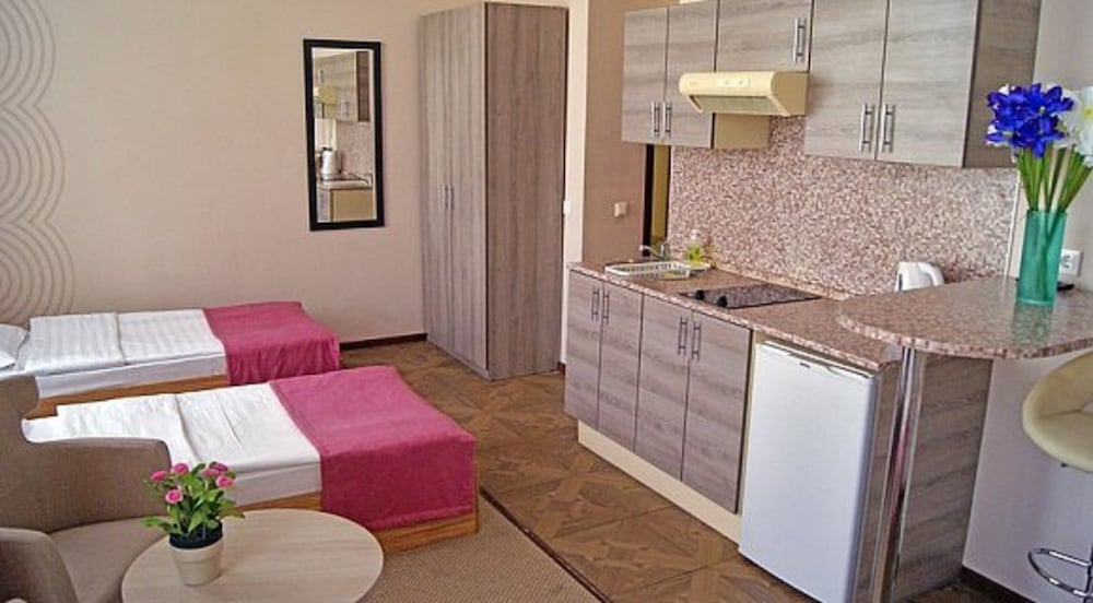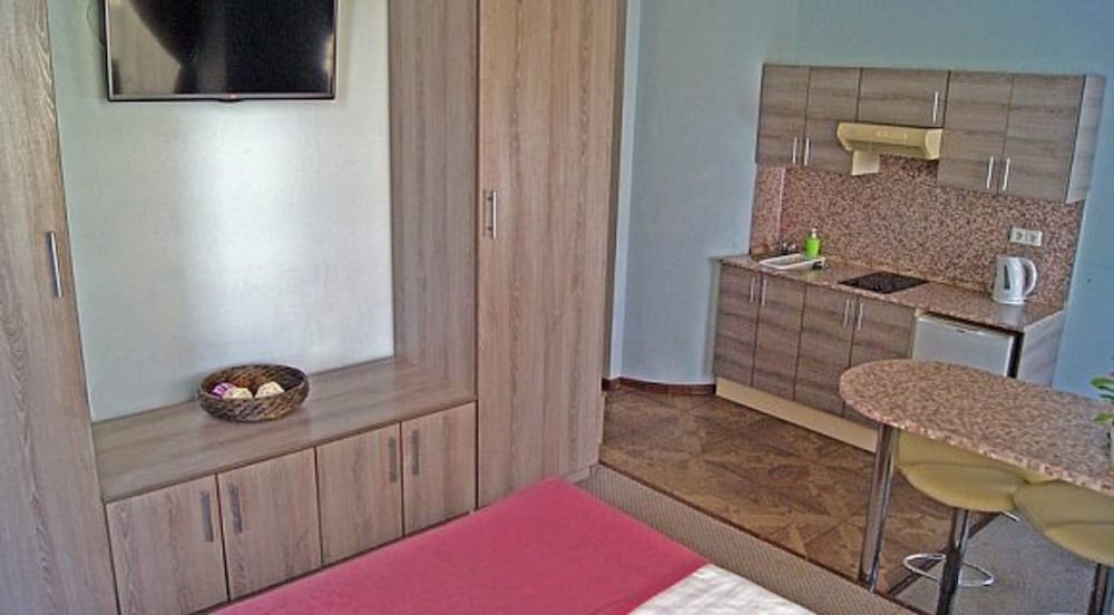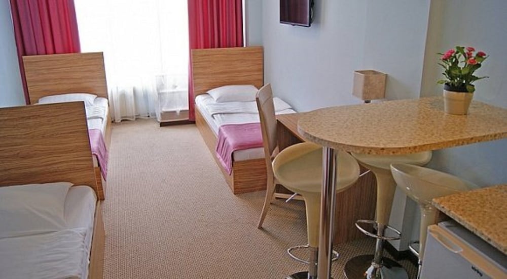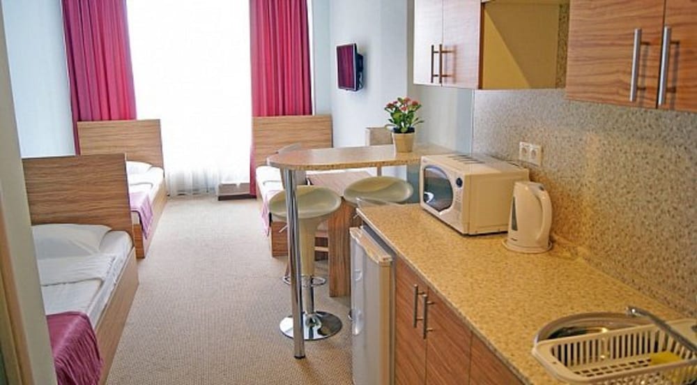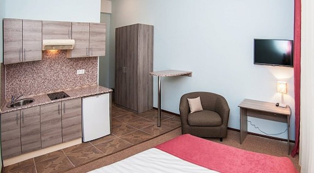 В номерах тараканы. Горячая вода появляется только после скандала на рецепции и то на полчаса. Грязно. На ковре, стенах и потолке пятна. Некоторая мебель неисправна. Номера убирают ежедневно, полотенца и постели меняют по требованию. Вытяжка на кухне не справляется. Весь запах приготовленной пищи остаётся в номере.