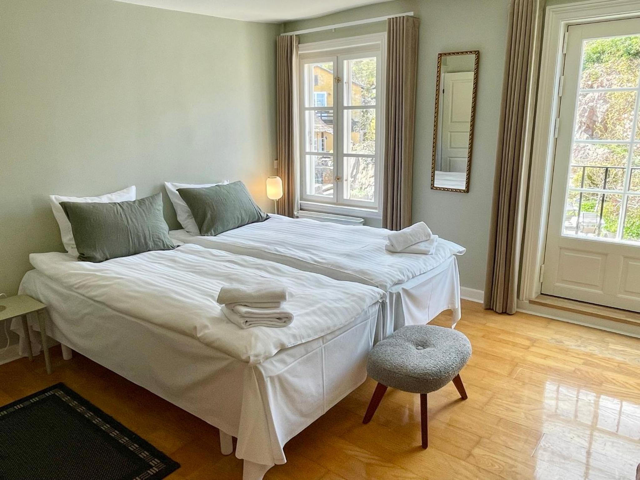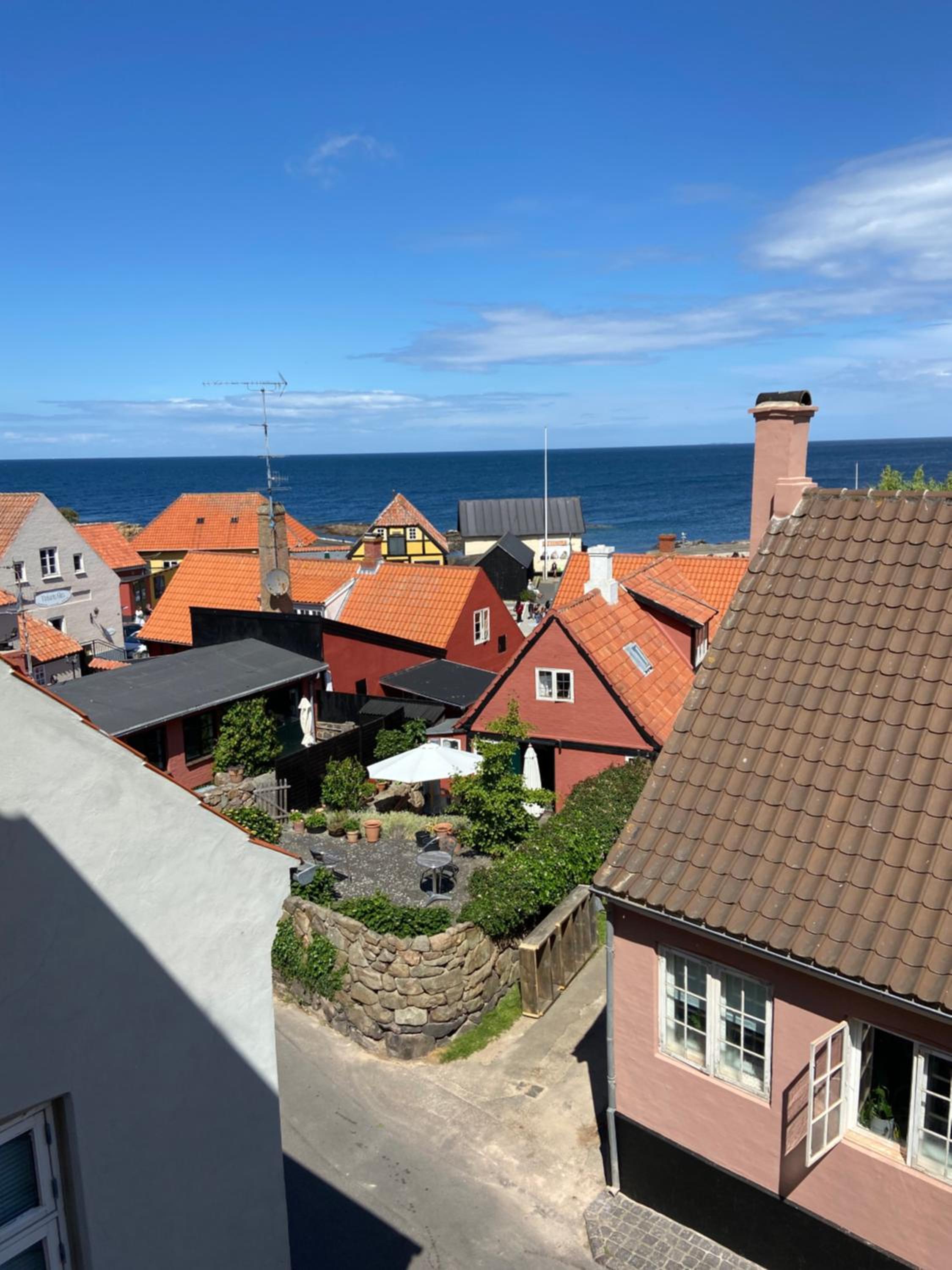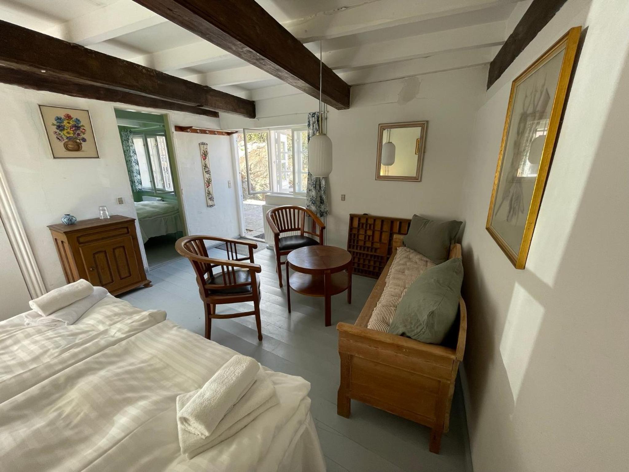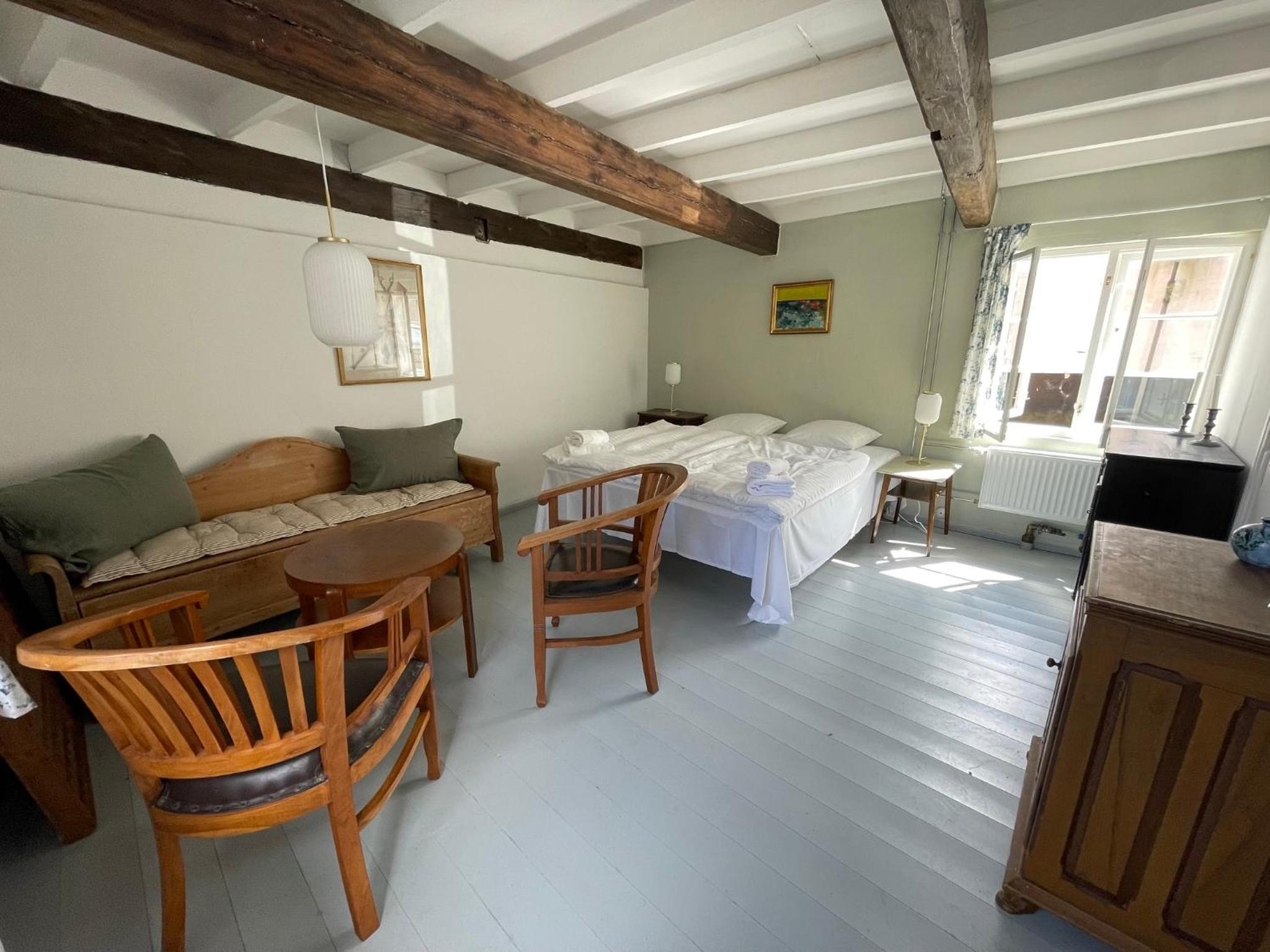Läget perfekt. Bemötandet vänligt. Gratis parkering på baksidan av hotellet. En underbar innergård att inta frukost i. Frukosten liten men med både varmt och kallt. Framdukad med känsla. Trädgårdens fikon så söta och goda. Självservering av drycker i ett gemensamt allrum, mot att man skrev upp vad man tagit. Tyst och lugnt i detta bedårande Gudhjem.