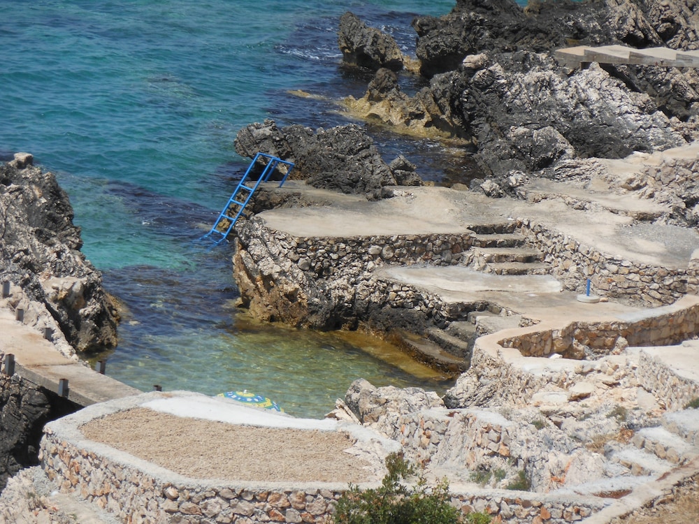 While it was hard to find the hotel (only one street sign and no sign on the building), it is perfectly located right on the Adriatic coast. The coast is quickly being taken over by touristy places, but this little hotel and the rocky beach side it sits on is a very quiet alternative. There are enough tourists to ensure that local restaurants are up to speed, but not so many that it feels overrun. I would definitely recommend this hotel for families with a car. It is a little isolated, but if you want a quiet place to swim and sun bathe, then this is it.