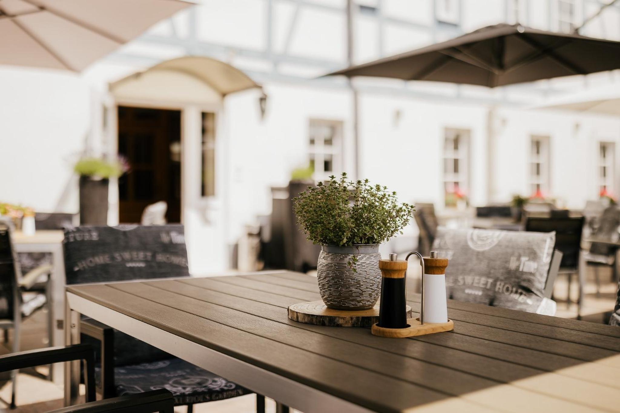 Schönes Fachwerkgebäude mit schönem Restaurantbereich, gutes sehr nettes Personal und Rezeption, bieten viele Extras inkl. kleines Kino.
