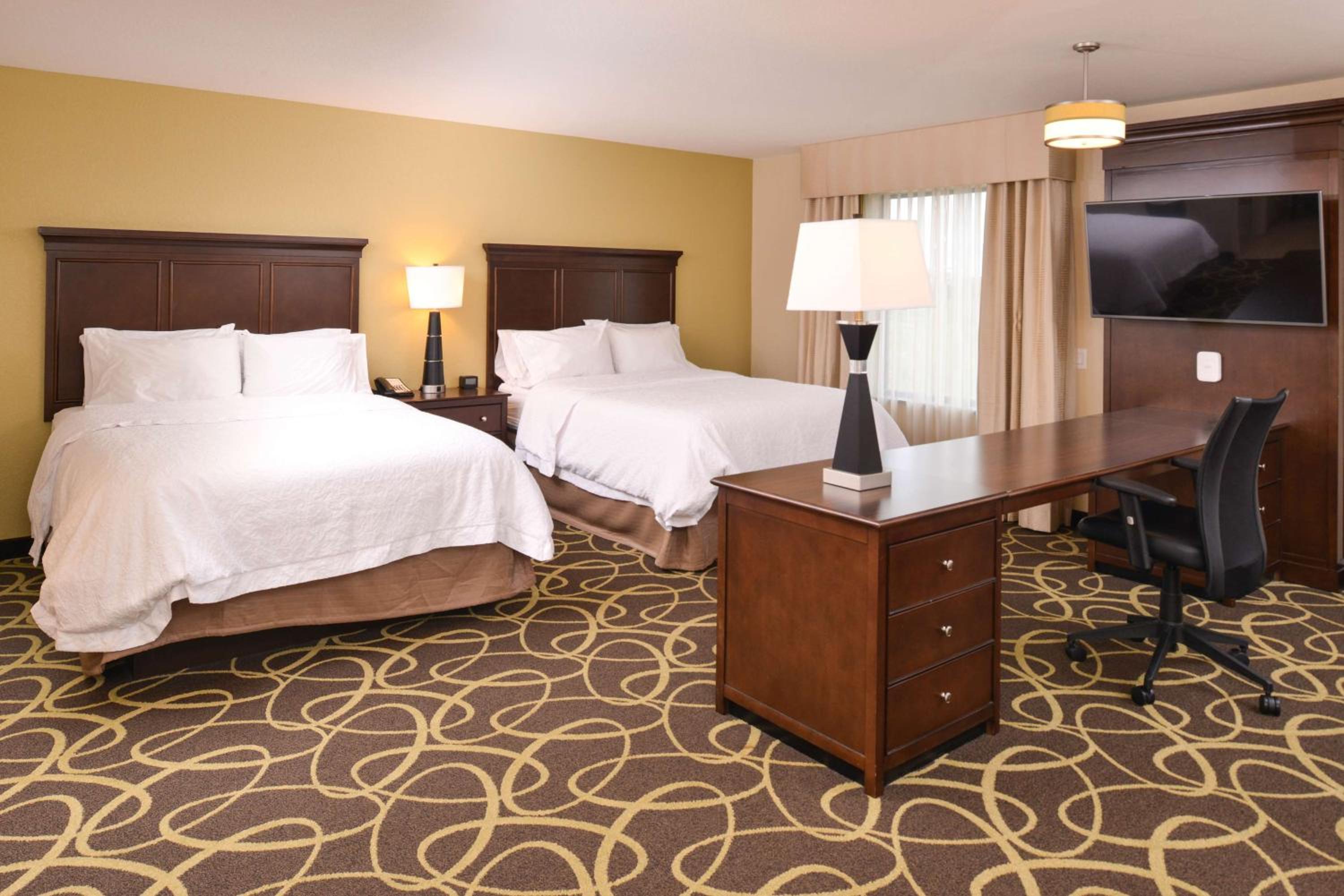 Hampton Inn Omaha Midtown provides elegant rooms with flat-screen TVs and private bathrooms for a comfortable stay.