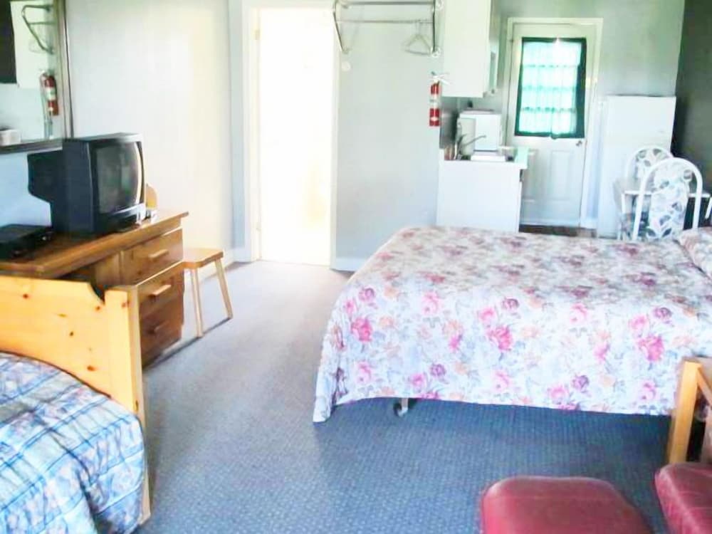 The room smelled. The coffee maker in the room had moldy old coffee packet still in the machine. The coffee cups had dried coffee in the bottom. The face cloth I almost used had dried crusty bits on it. The tv got one channel. The bathroom sink looked like it hadn't been cleaned in ages. The window almost fell out when I tried to open it. When you arrive you drive up to the back of the "resort" which had garbage strewn about. I think it should be renamed "Musty's Resort" (When my husband read what I wrote he said I was being kind!)