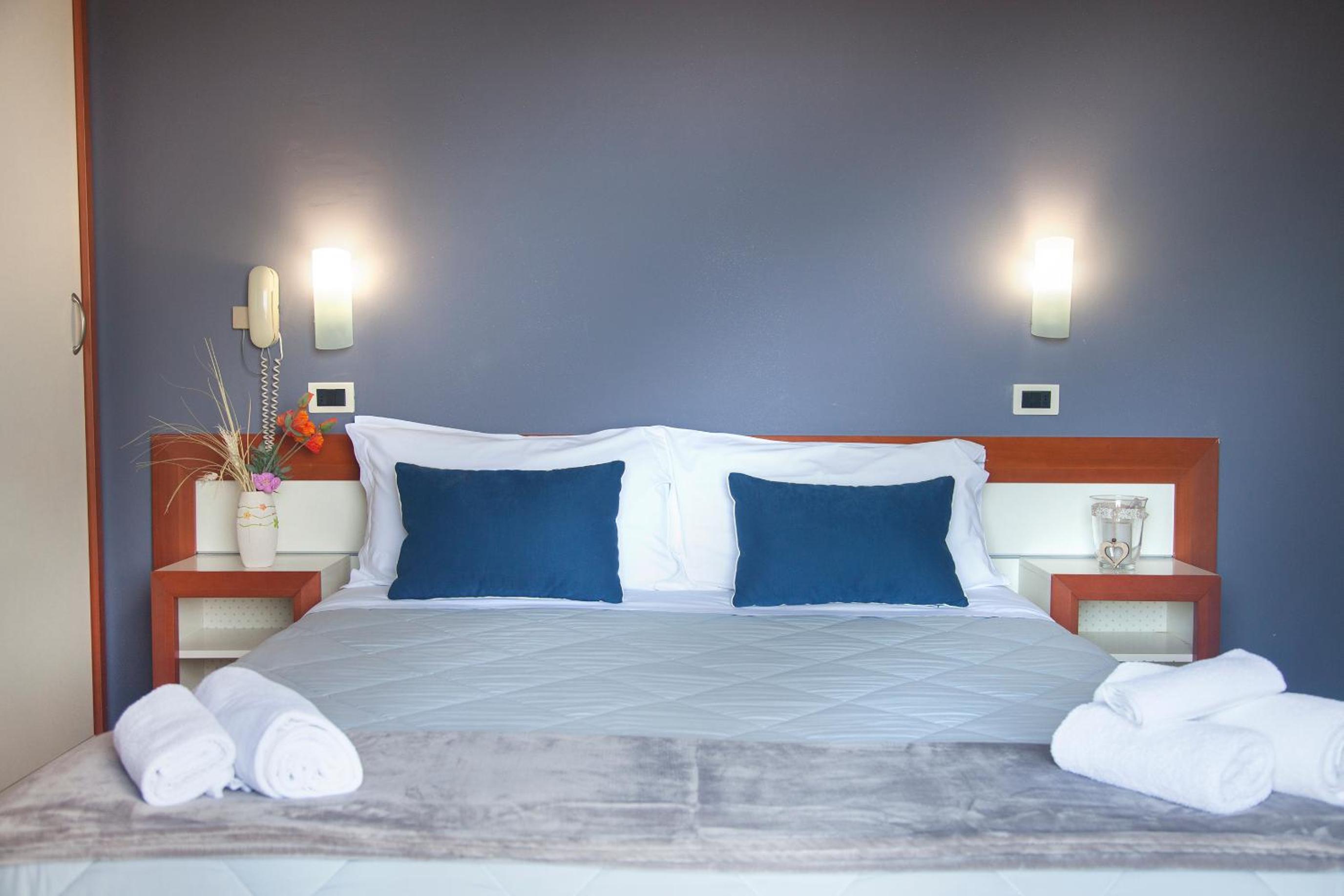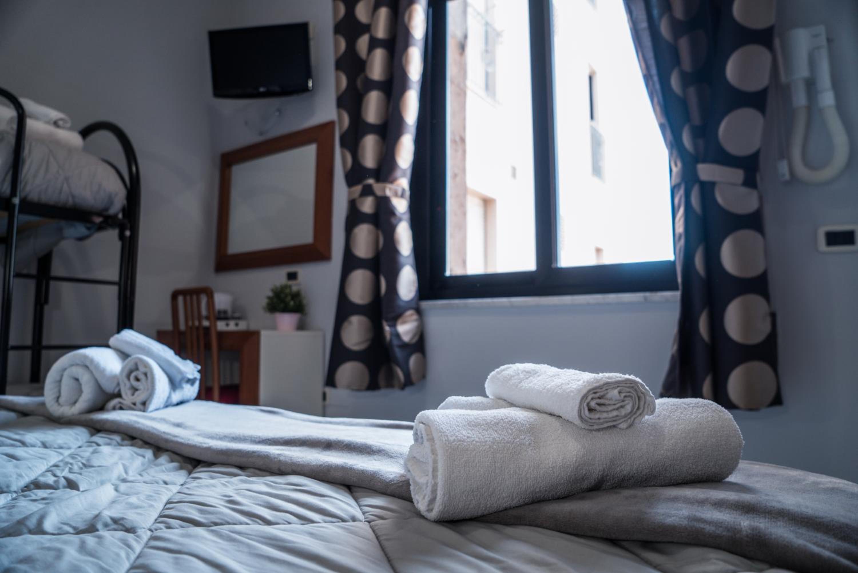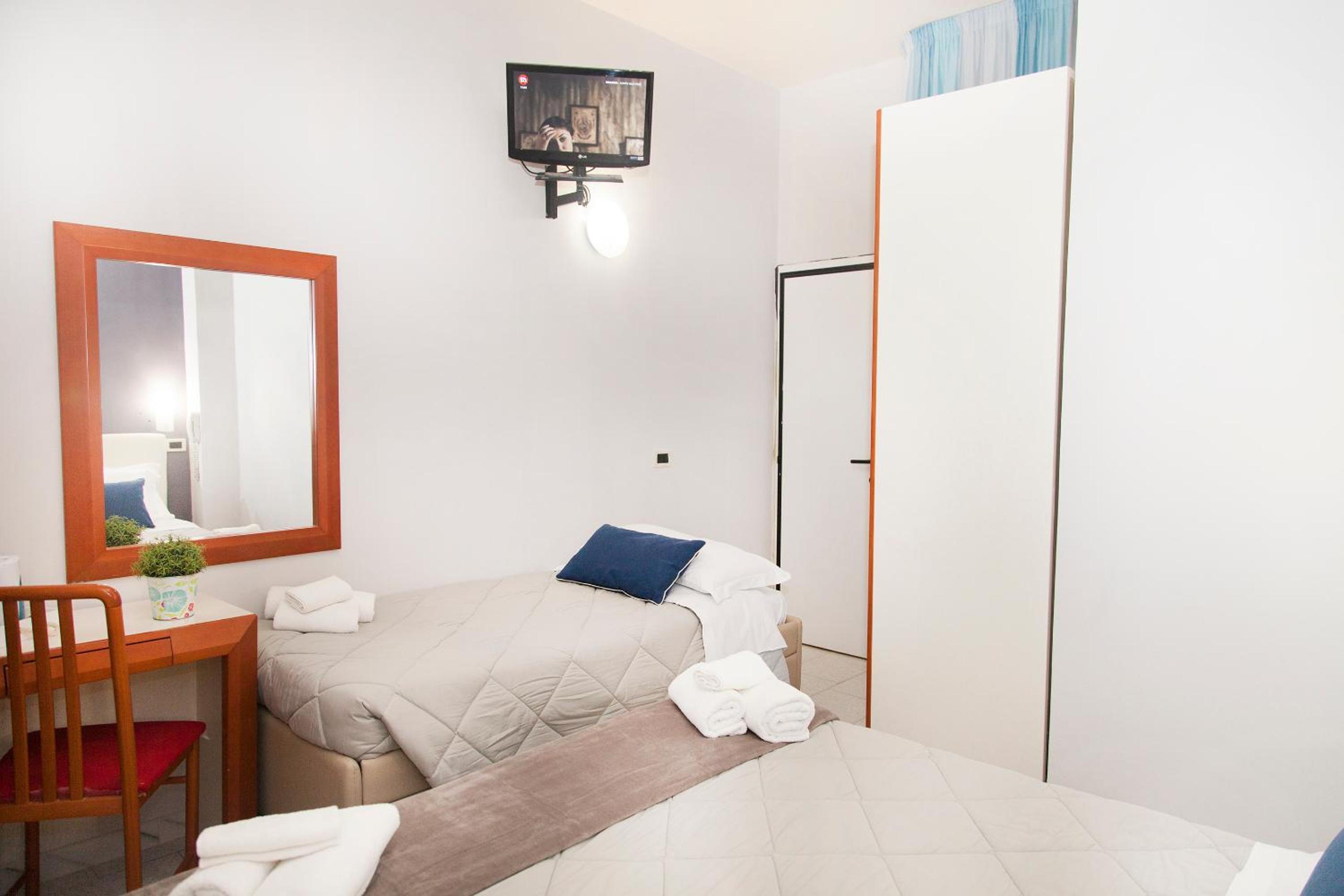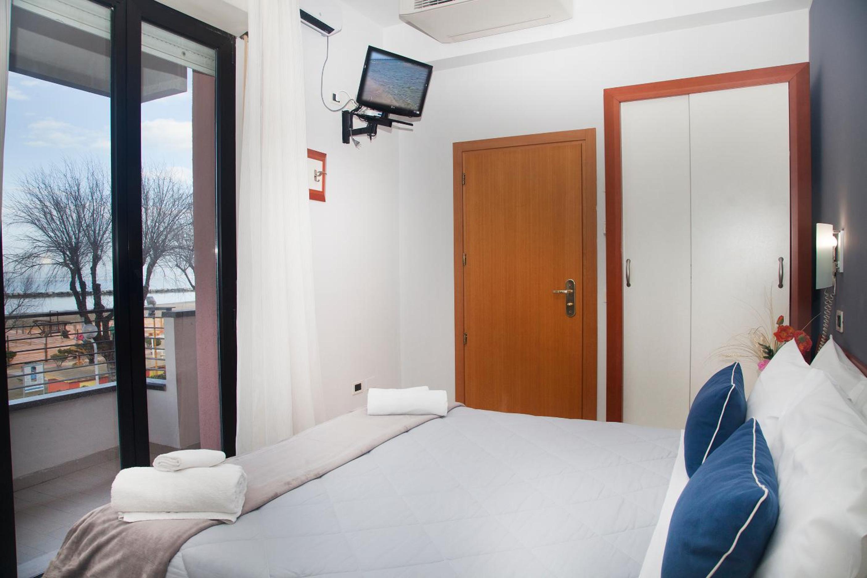 The air-conditioned rooms at Hotel Melita are designed for relaxation, featuring en suite bathrooms, flat-screen TVs, and some with private balconies.