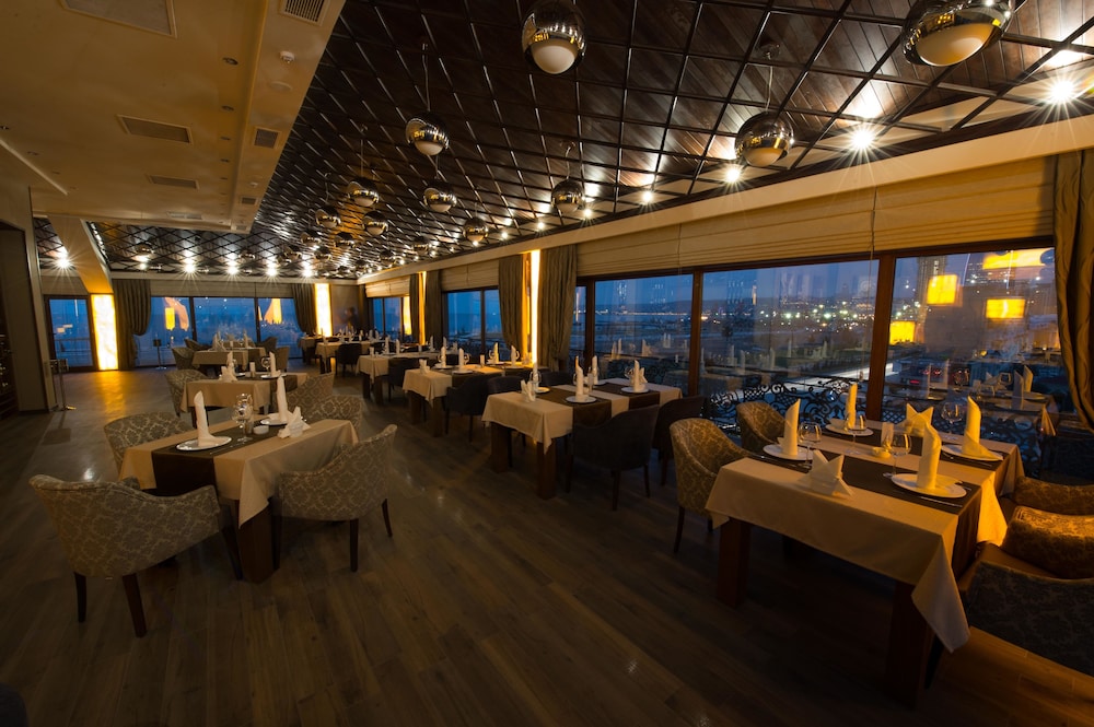 Hotel with views of Caspian Sea ; Rooms are bit smaller but would be for the price ; restaurant staff are helpful , not much spread in the buffet , no hot water kettles available in side the room ! If you have bolt app it’s 3 manat ride to the city ! Hotel staff are trying their best to be helpful!