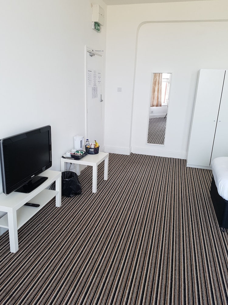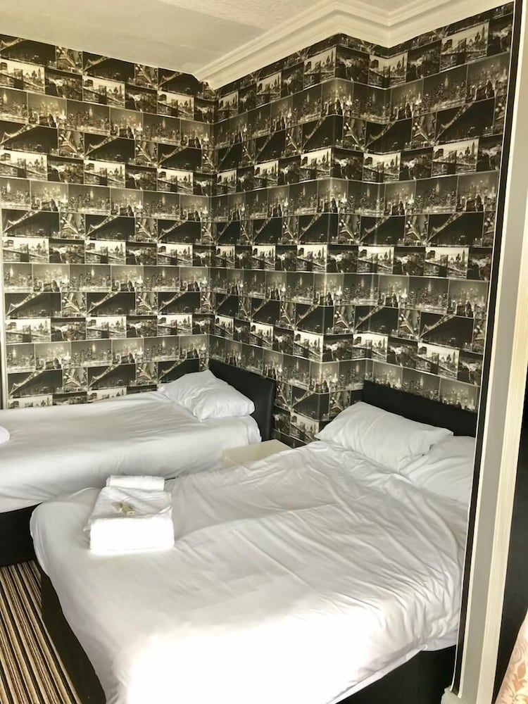 Brought my 7 year old nephew with me for a mini holiday (a night in rhyll). Kept things lighearted for him but the hotel/rm was grim. Whilst thr carpet in the rm had been hoovered all the skirting and window ledges were thick with dust. Bathroom floor dirty and also the toilet bowel were grubby. Holes in the walls, a thick layer of dust under rach bed, only 1 pillow each and no spare in the wardrobe, thin summer quilts (its mid feb) and no spare in the wardrobe (i slept fully clothed with socks on). Reception unmaned when we arrived and the same again when we came back on the evening. The most significant issue was the level of noise (people coming in as late as 4am screaming snd shouting). People with techno music blasting above us and the tv next door ridiculously loud. 1 lady was knocking on doors on our floor for a plastic bag with her little girl in tow (only a toddler). I hate to say it but i deduced that this is a flop house ( homeless people presumably placed here by the council). I didn't feel safe ive got to be honest. Just so many drunk people. I like a drink myself but.... im knacketed, still awake until after 4am. I will be asking for my money back.