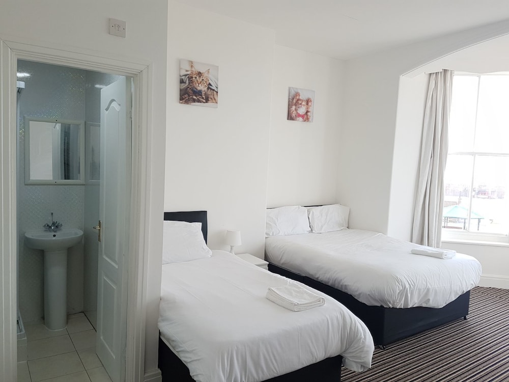 leaking taps in the bedrooms, not cleaned before we arrived or during our stay, bedding not changed for the duration of our stay, bins not emptied during our stay, mold on the walls,no sink in the toilets? no parking unless you pay and display. no dining facilities/none offered. walls are all painted battleship grey decor is embarrassing. no disabled facilities. no lifts had to walk up 3 floors. sea view would have been nice apart from the years of dirt on the inside of the windows which was disgusting. GO STAY SOMEWHERE ELSE!!! they had the audacity to charge over £300 for 3 nights to stay here hahahahahahah