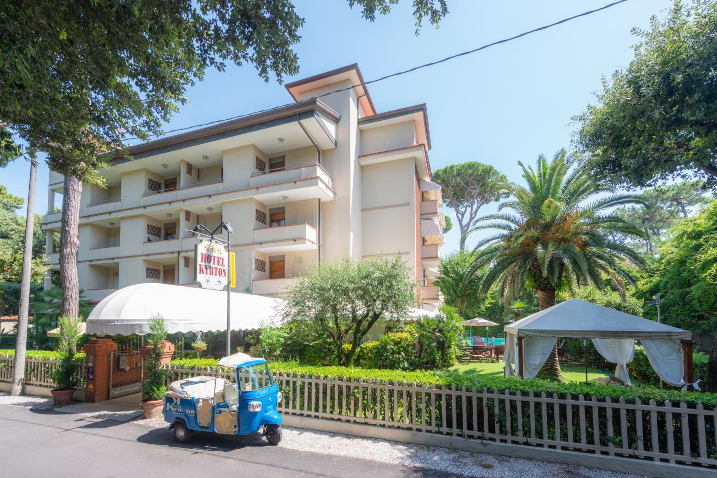 Situated just 500 meters from the sandy beach, Hotel Kyrton is also a short walk from Forte dei Marmi center. With bike rental services available onsite, exploring the picturesque surroundings is made easy. Book your stay now and indulge in a delightful coastal getaway at Hotel Kyrton.