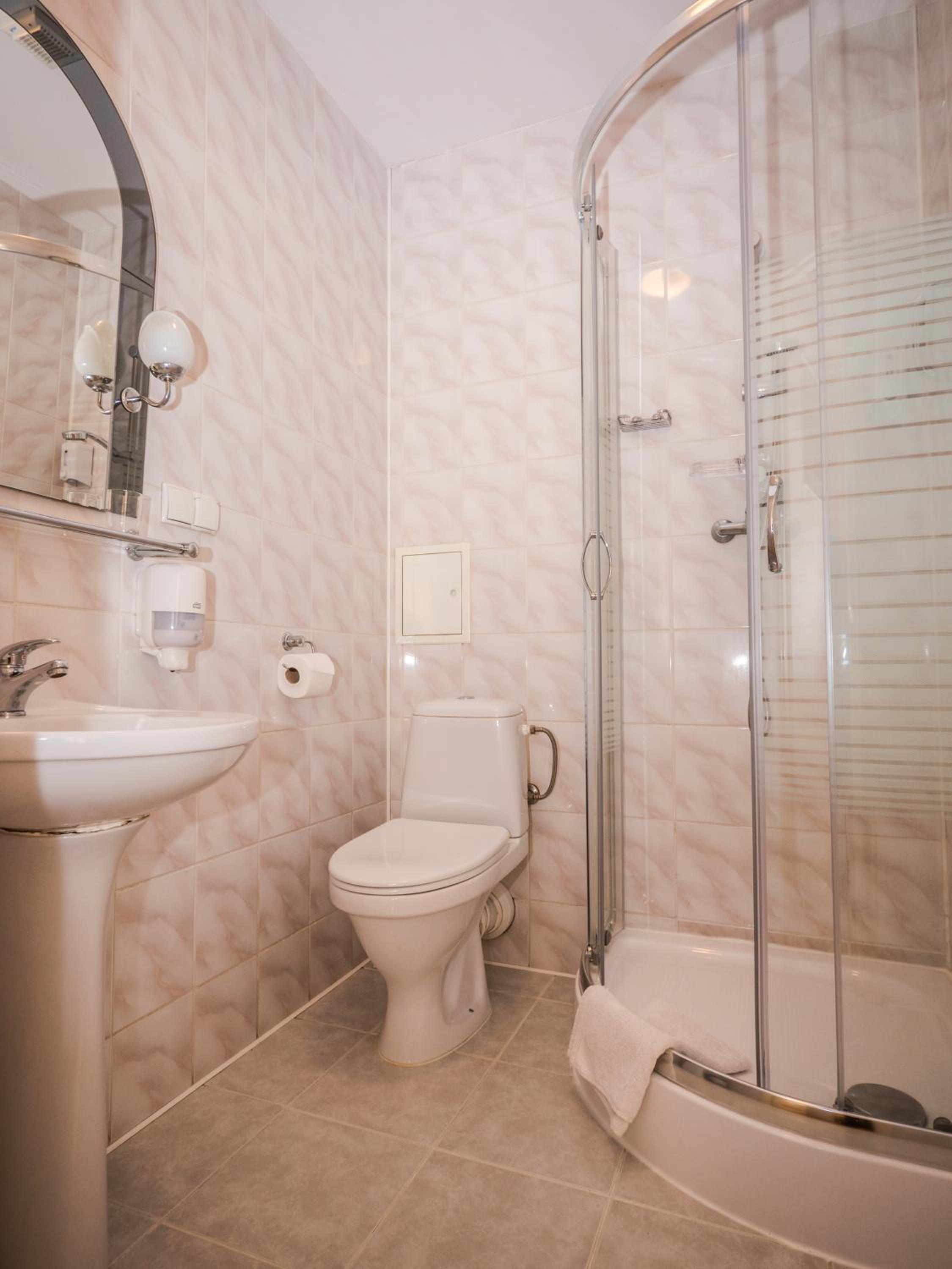 Woda gorąca po dłuższym czasie puszczania i farelka-grzejnik elektryczny,który uratował pobyt.