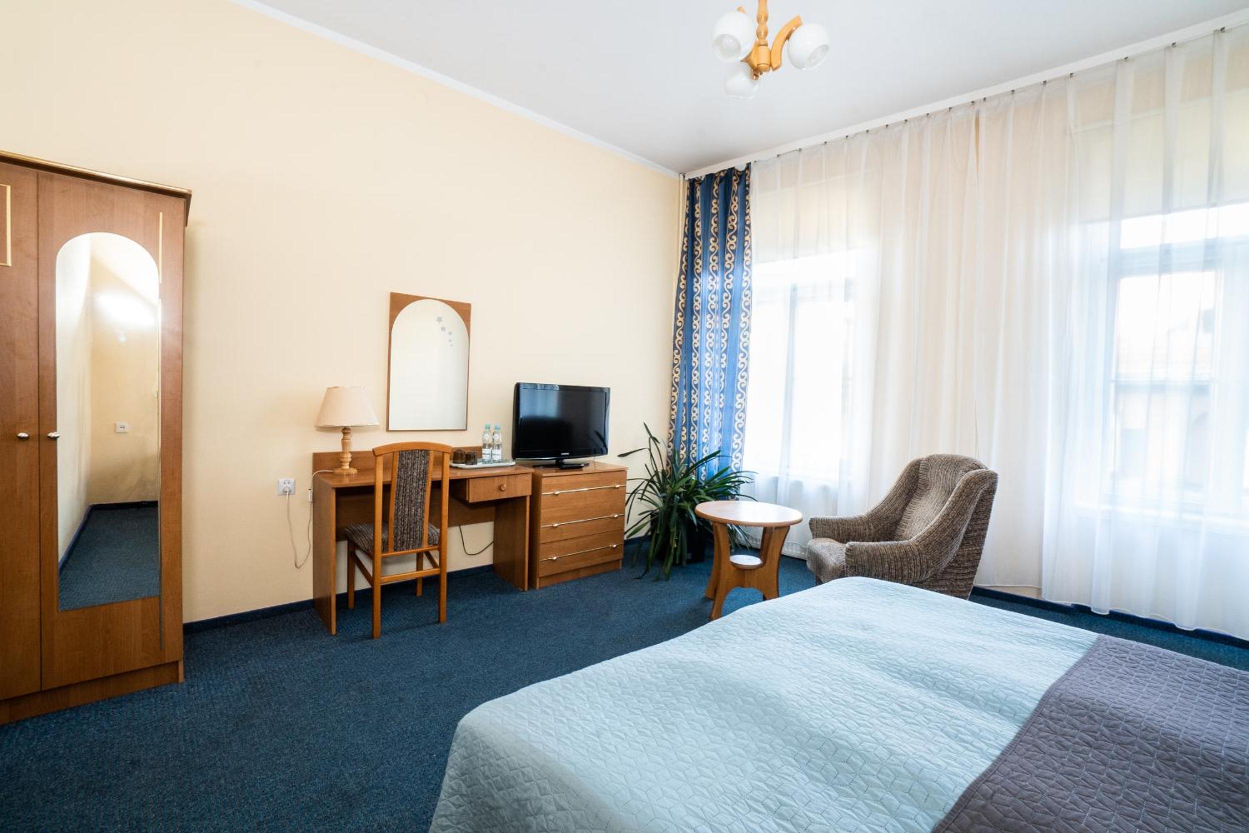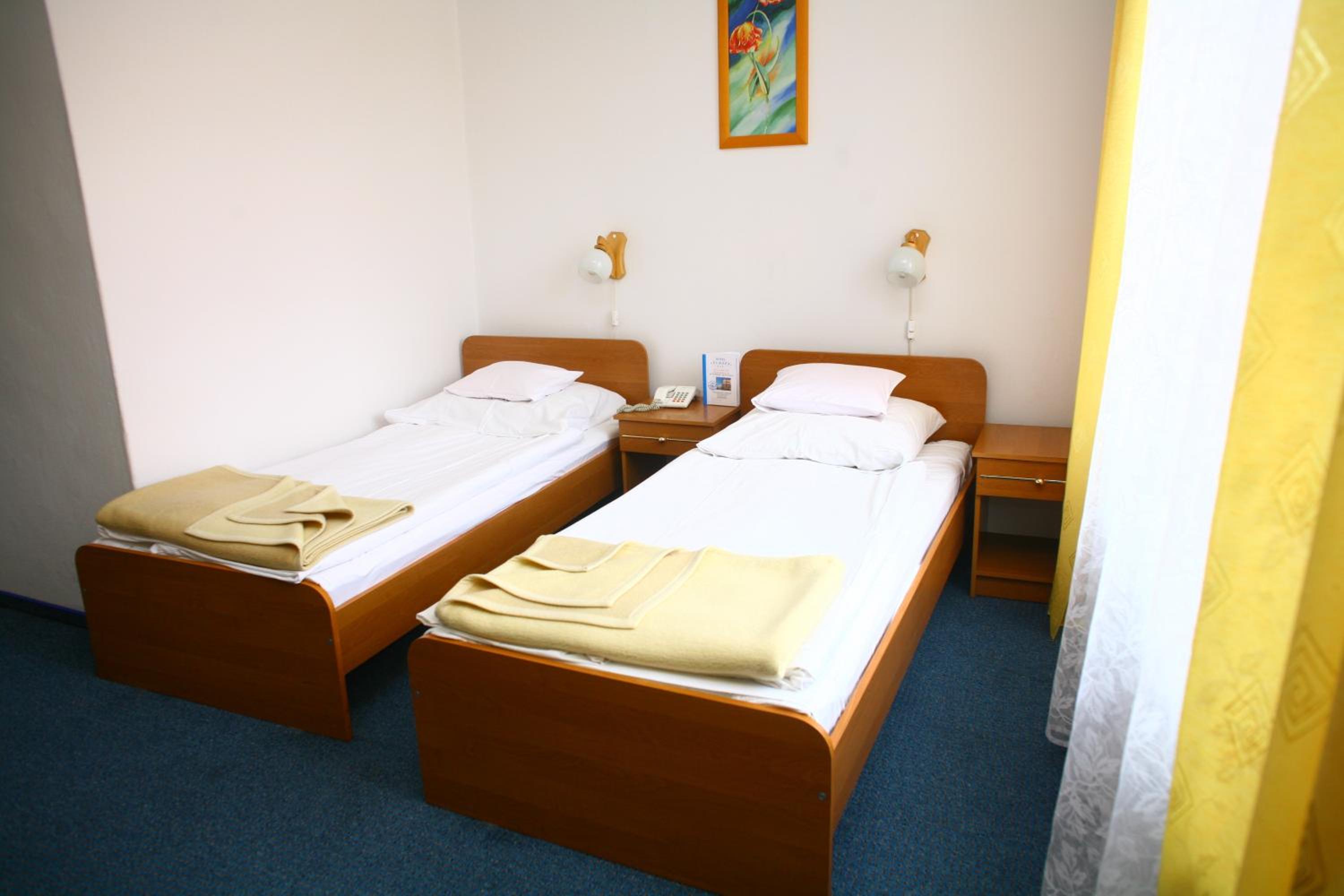 Each room at Europa hotel is equipped with modern amenities such as an electric kettle, free Wi-Fi, cable TV, and a telephone, ensuring a cozy stay for guests.