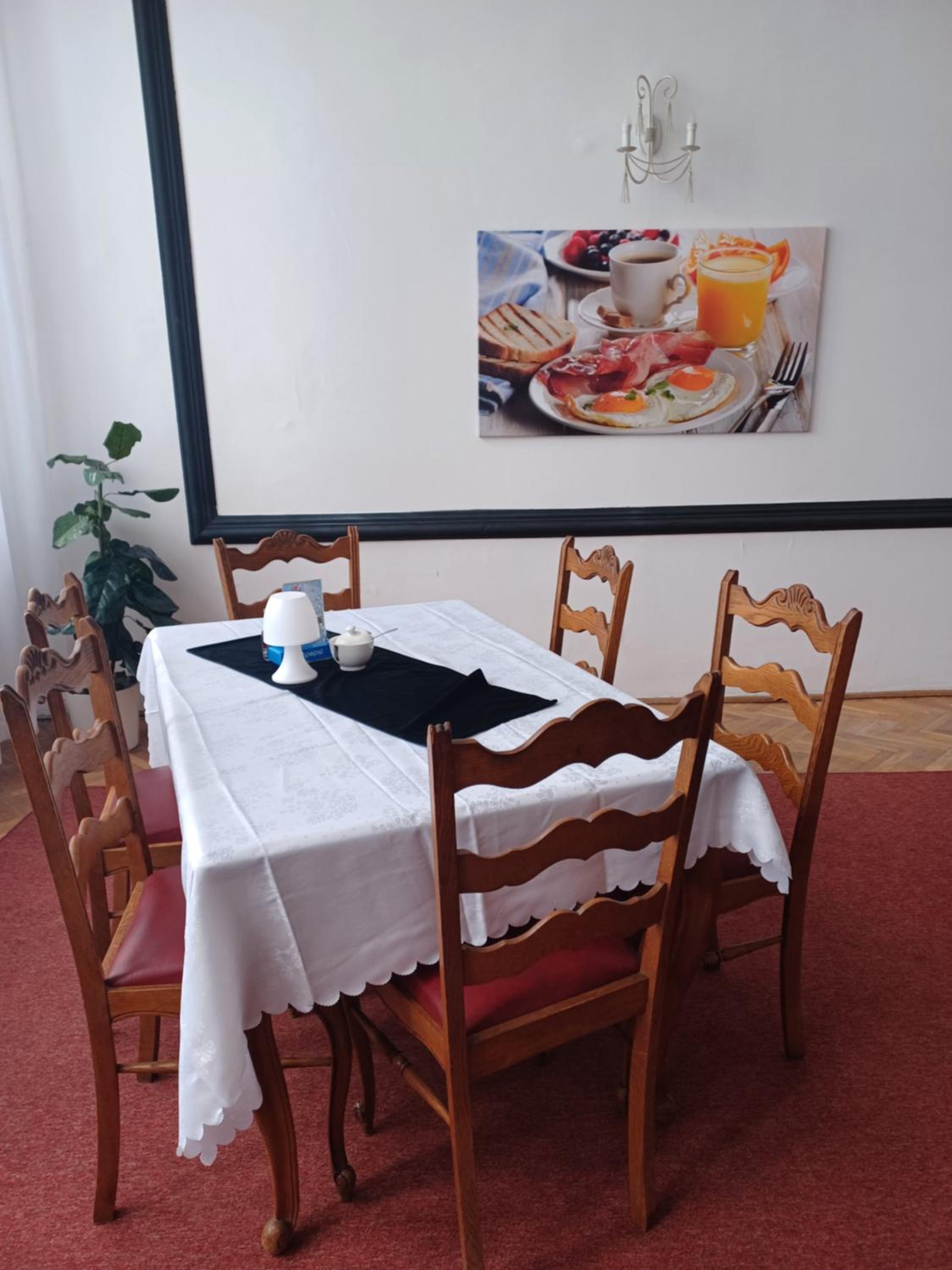Wystrój lata 60te -odnowione 50/50. Obiekt proponuje tylko śniadanie w formie szwedzkiego mini mini stołu,nic poza tym. Chleb i bułki jeśli ktoś potrzebuje zjeść,to trzeba zakupić dzień wcześniej aby mieć swoje świeże. Parking płatny 30zł. za dobę.