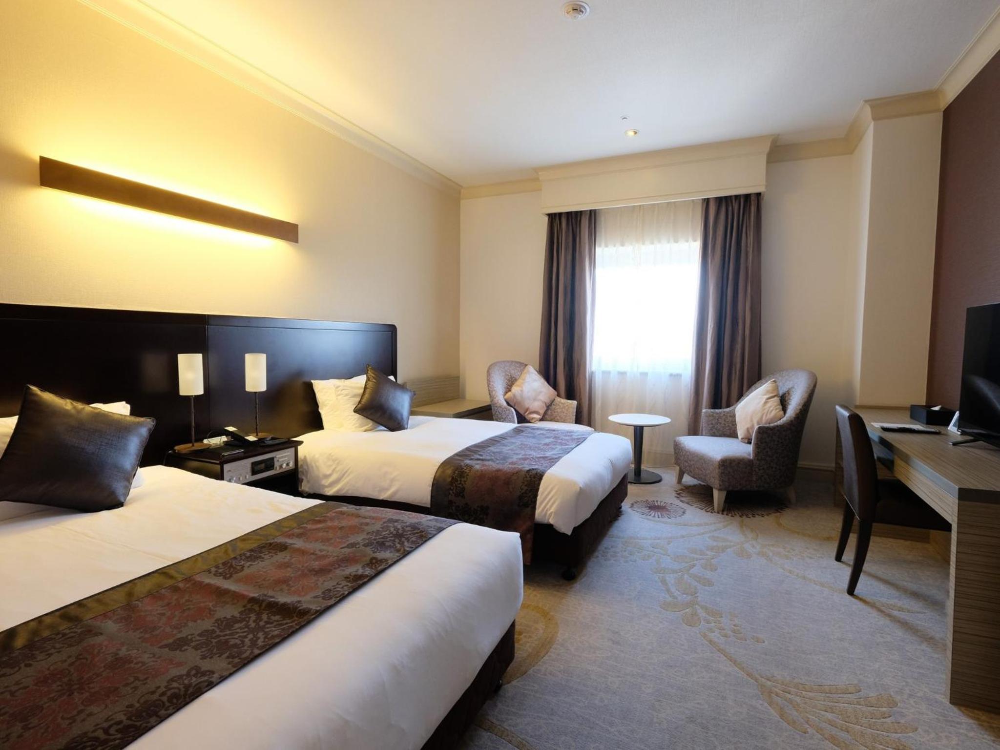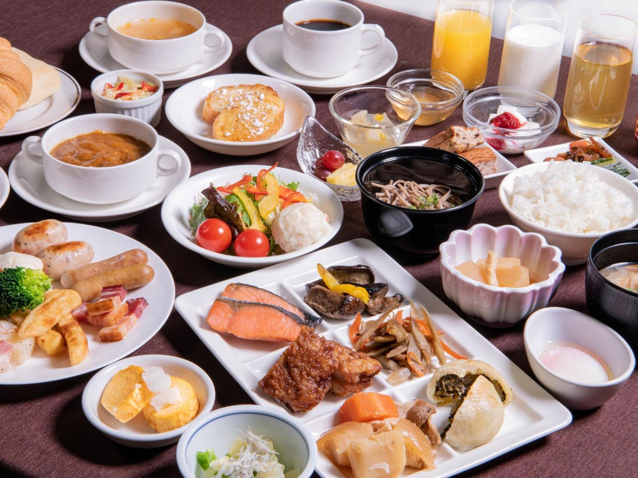 Guests can savor fresh croissants from the hotel's bakery at the breakfast buffet, indulge in Japanese specialties at Fukashiro, or enjoy a Western lunch/dinner buffet at La Cafe Terraza. Local ingredients are highlighted in all dishes served at the property's restaurants.