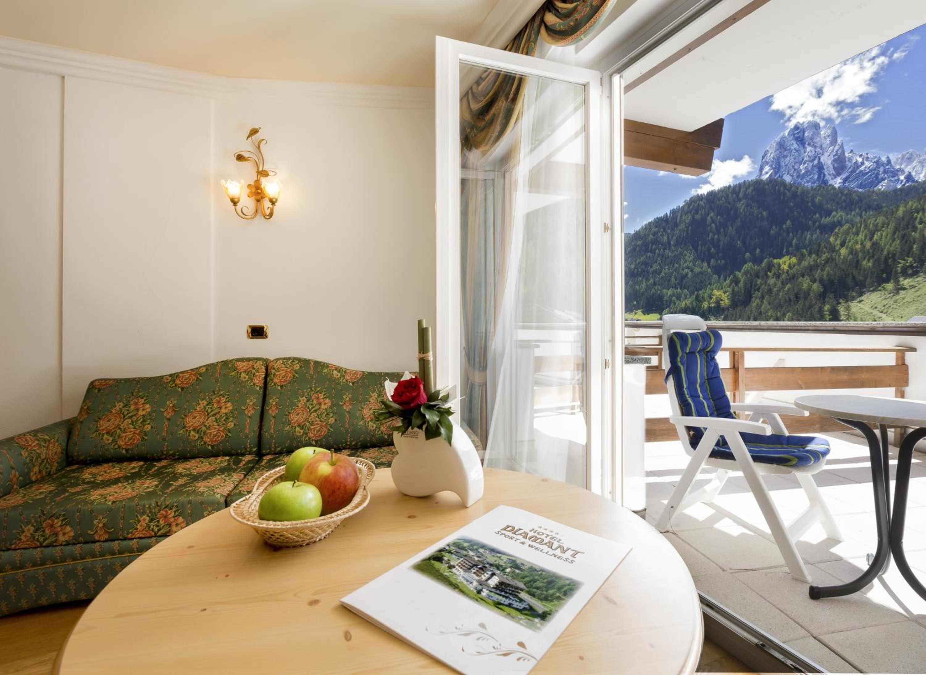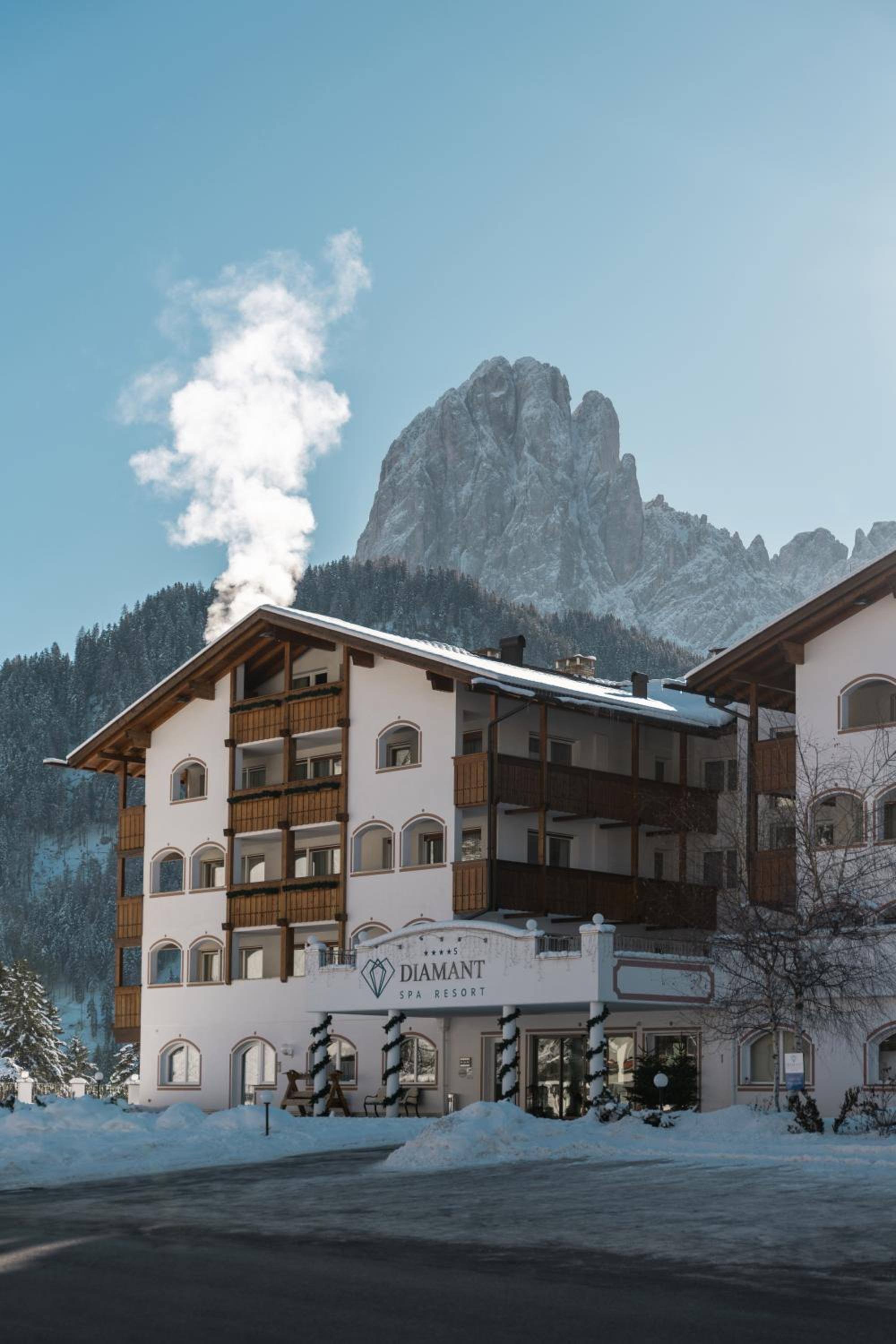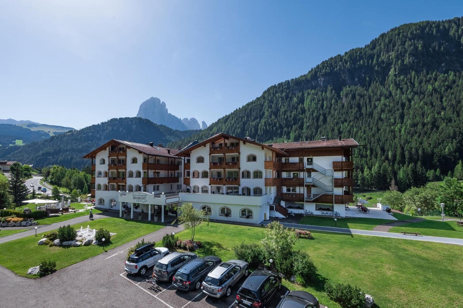 The 4-star superior Hotel Diamant, nestled in Santa Cristina in Val Gardena, offers a picturesque escape just 1.5 km from Sella Ronda ski slopes.