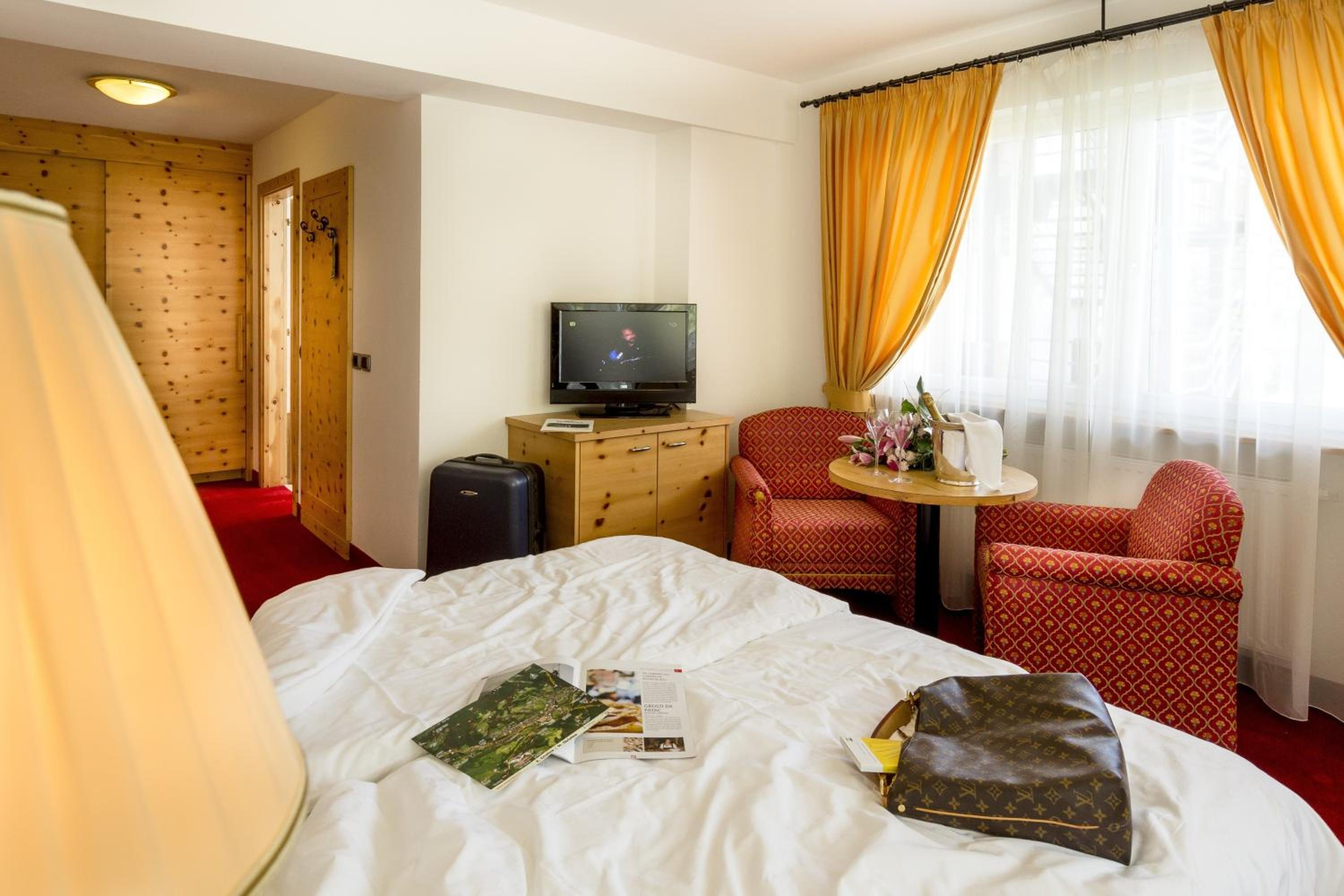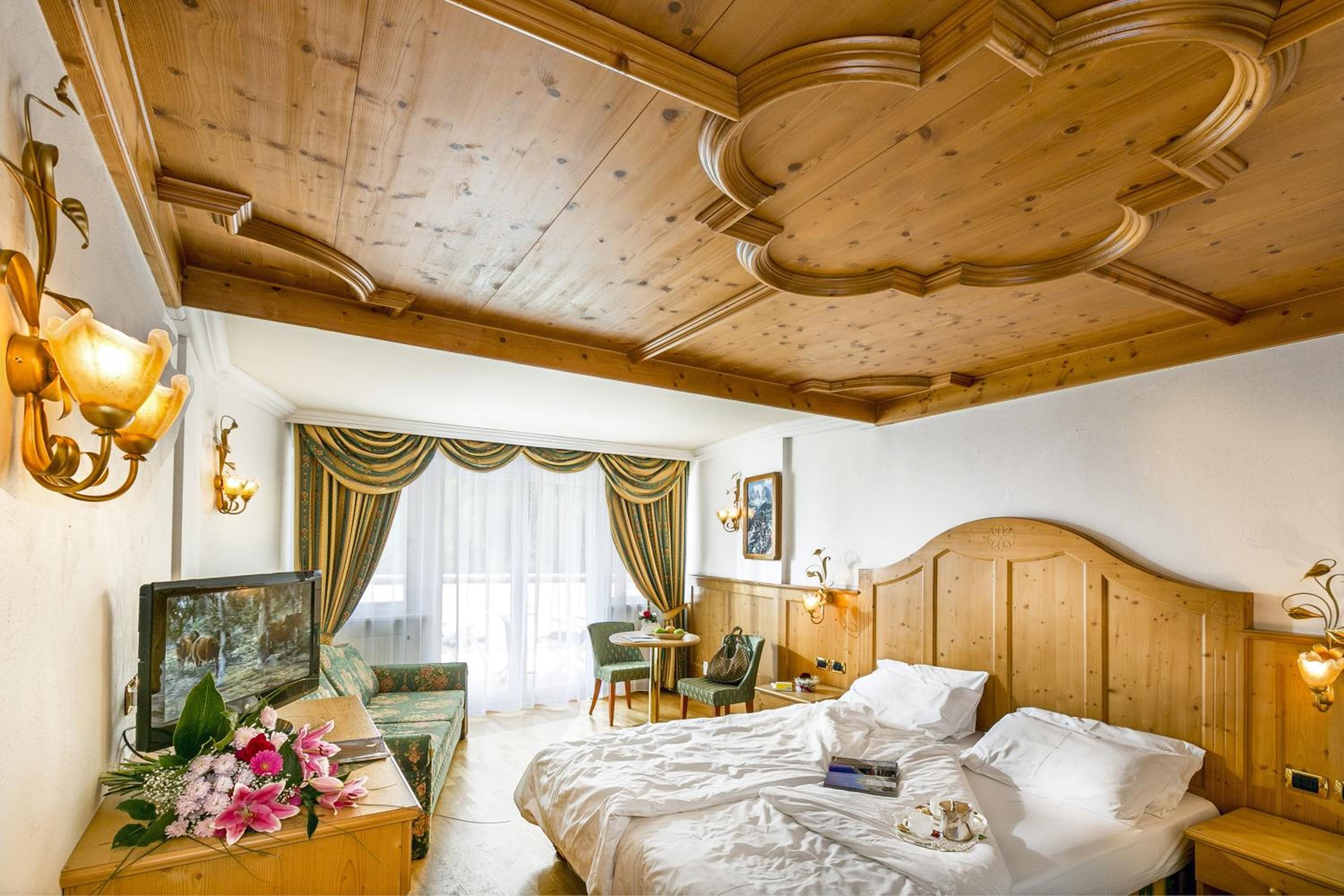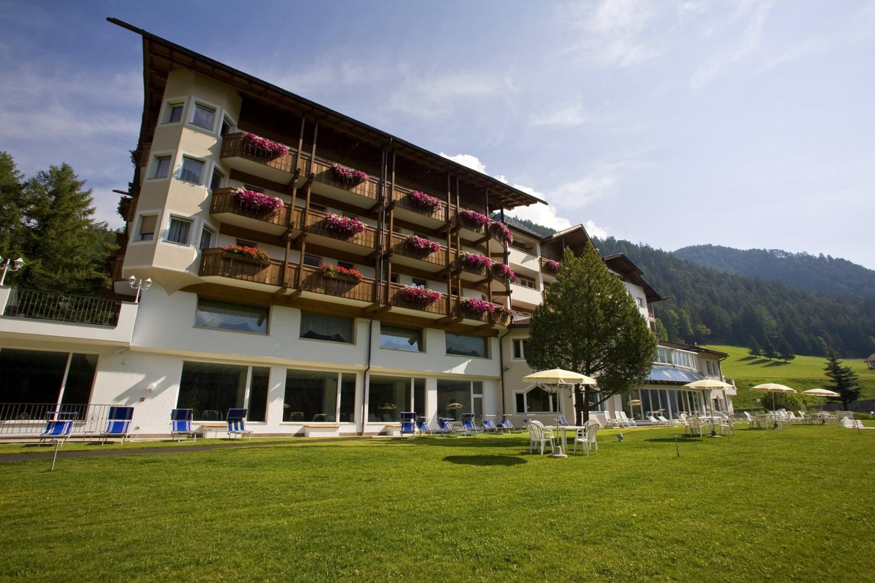 Indulge in the free wellness centre with an indoor pool, traditional Alpine design, tennis court, children's playroom, and games room. The elegantly furnished rooms with balconies provide breathtaking views of the Dolomites.