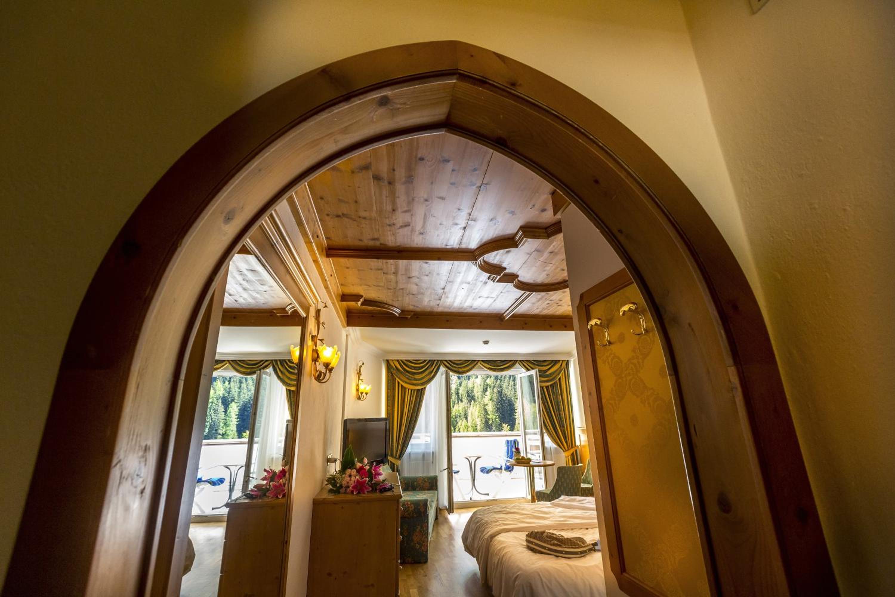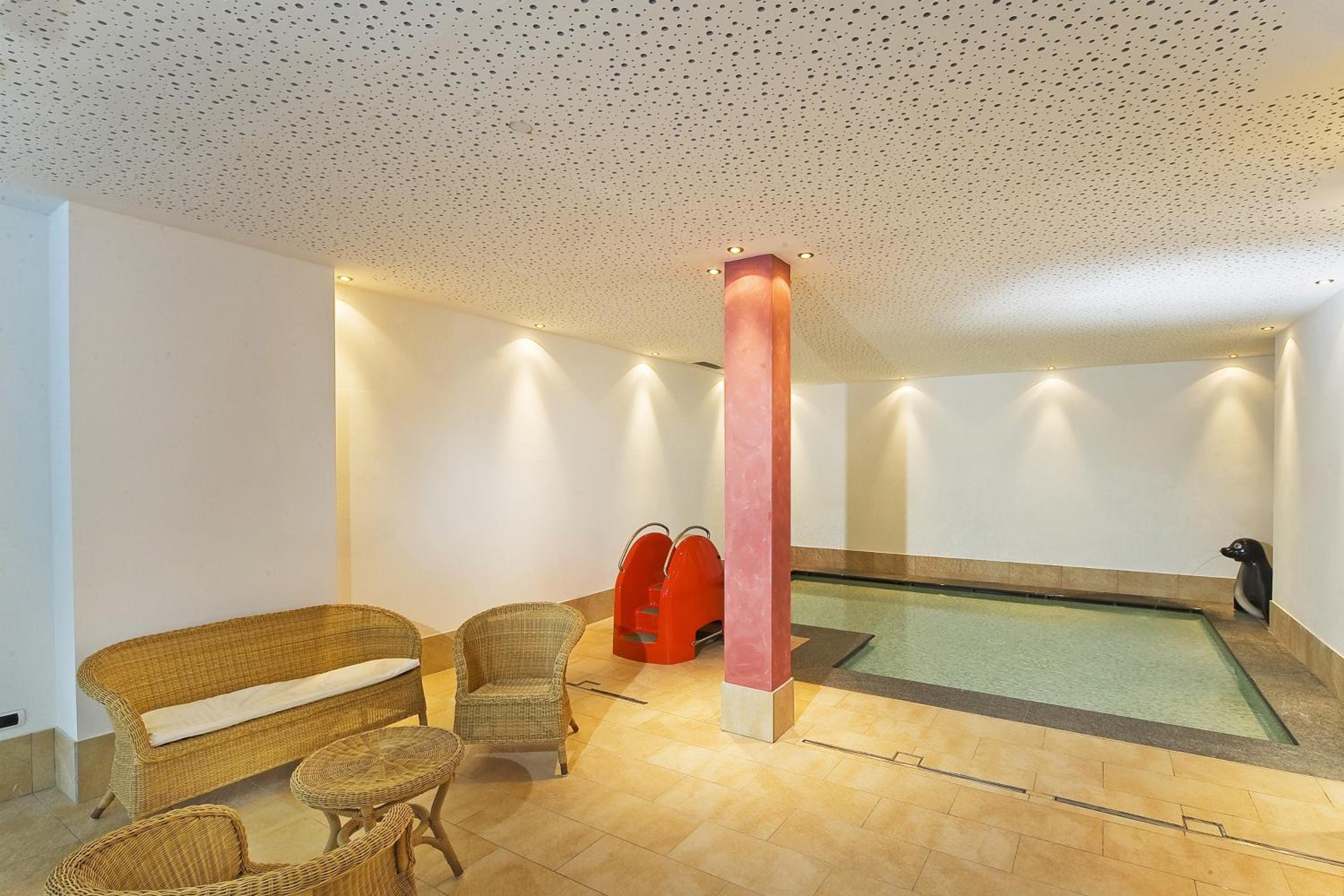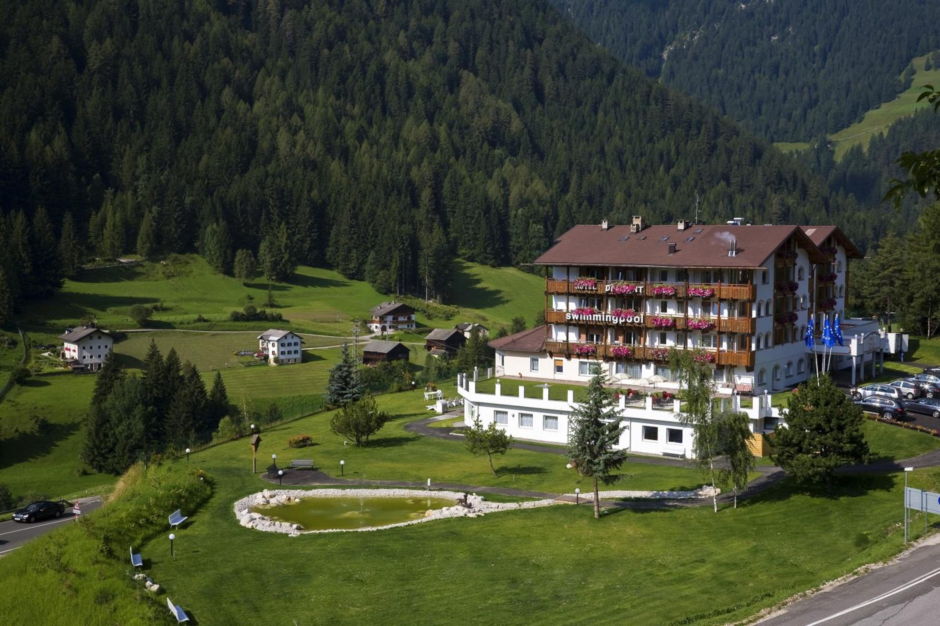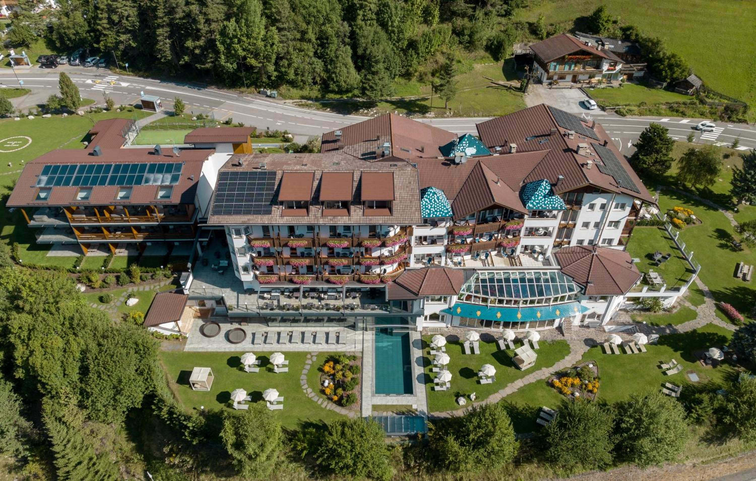 Indulge in the free wellness centre with an indoor pool, traditional Alpine design, tennis court, children's playroom, and games room. The elegantly furnished rooms with balconies provide breathtaking views of the Dolomites.