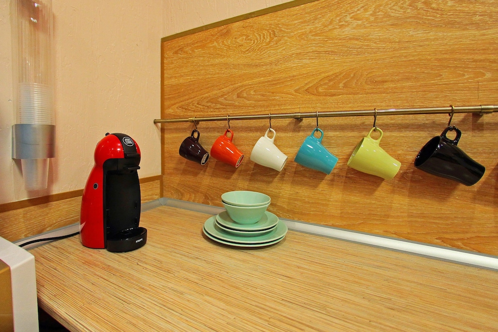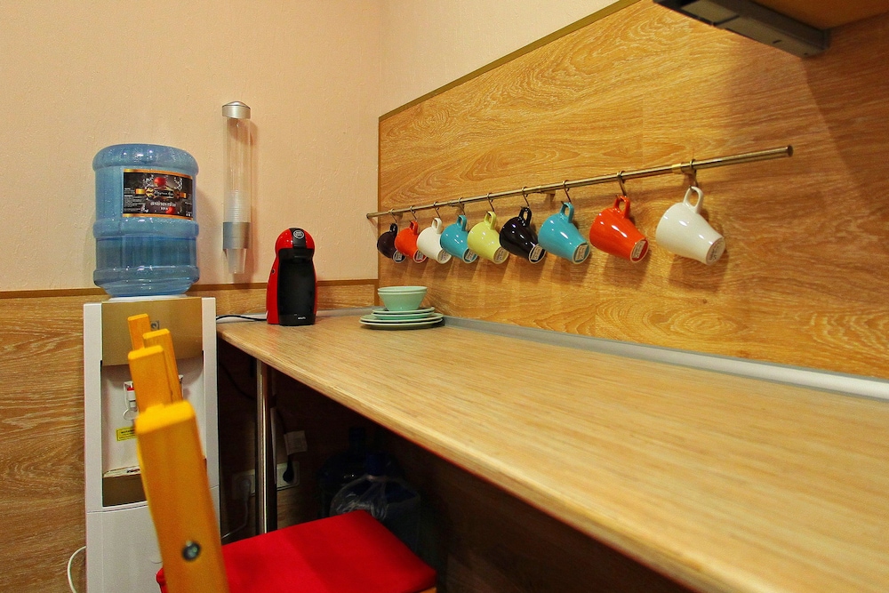 Плюсы: мягкие удобные матрасы, хорошая площадь номера, цена и расположение отеля. Бесплатный кофе и чай в лобби. Пустой общий холодильник.