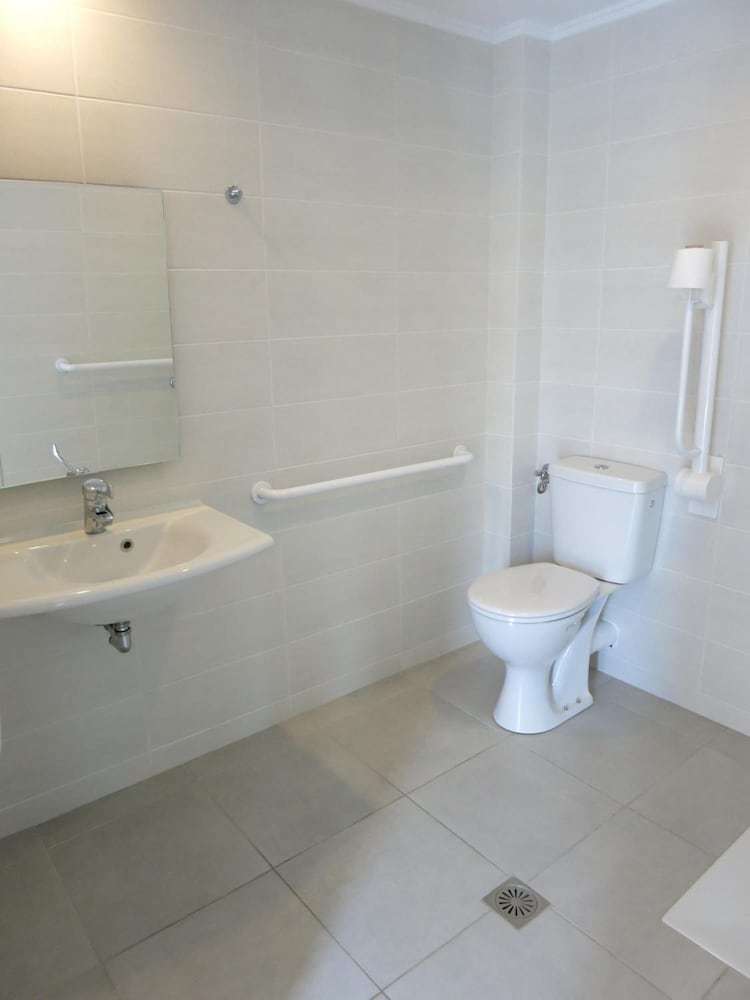 The apartment was modern with a lovely bathroom.