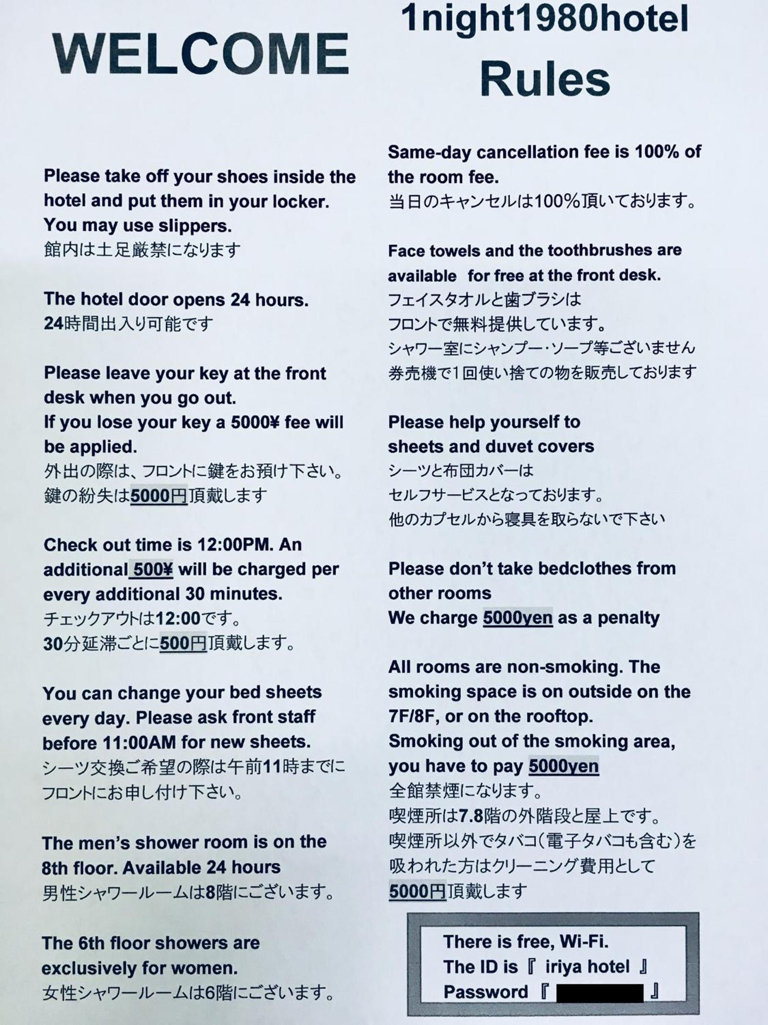 Enjoy the convenience of a 24-hour front desk, coin-launderette, and vending machine at your disposal. Stay connected with free WiFi throughout the property. Whether you're traveling solo or with friends, 1 Night 1980 Hostel Tokyo ensures a hassle-free stay for all guests.