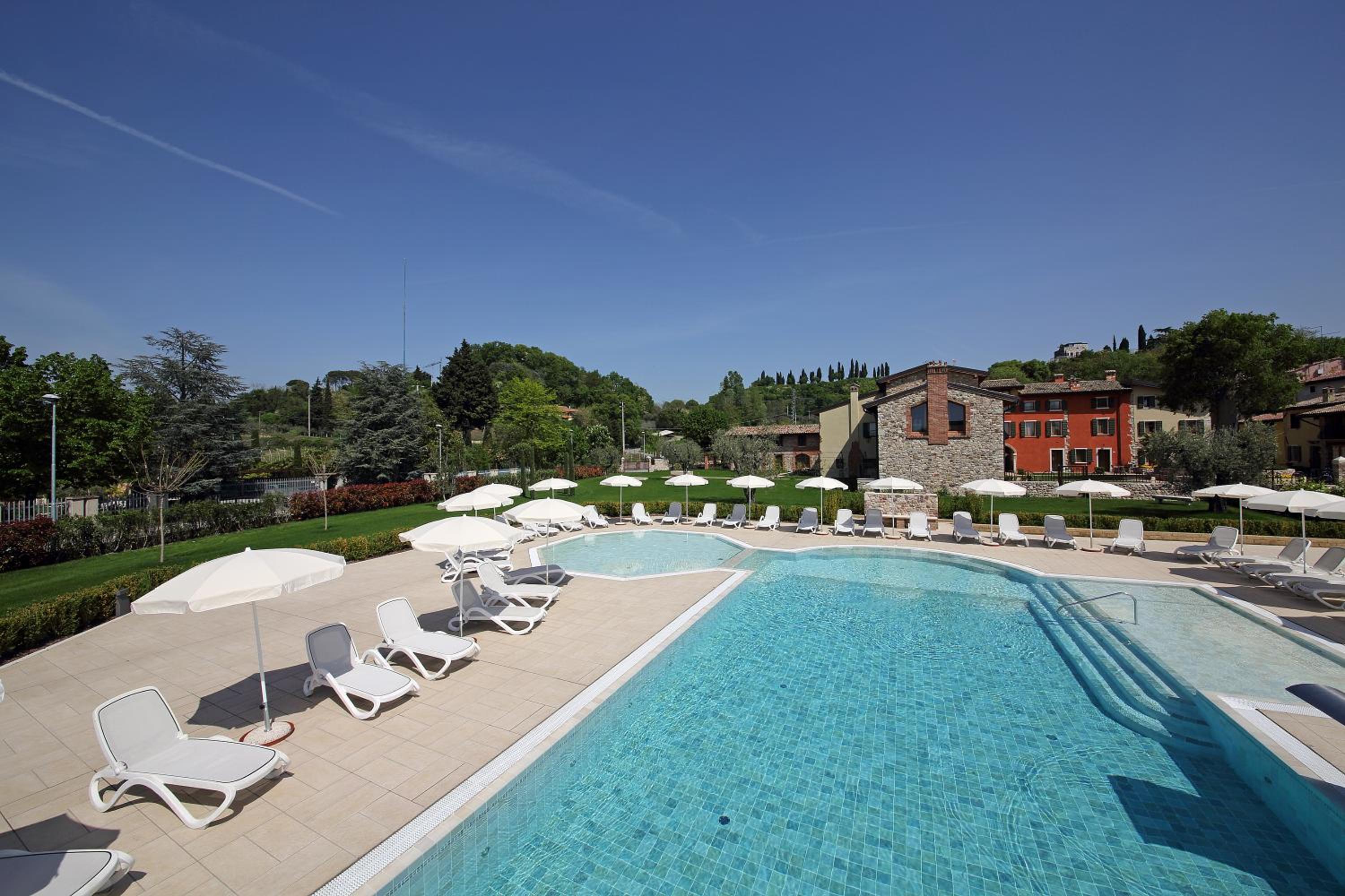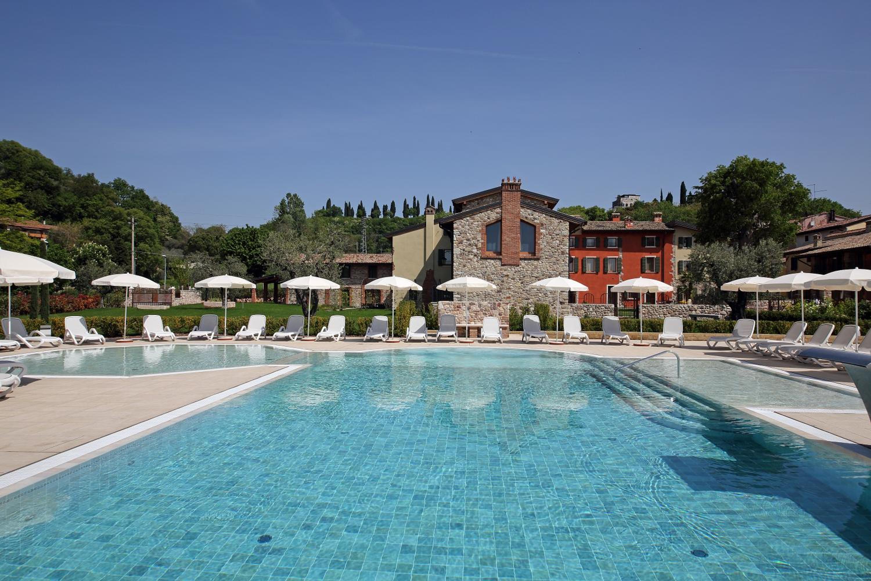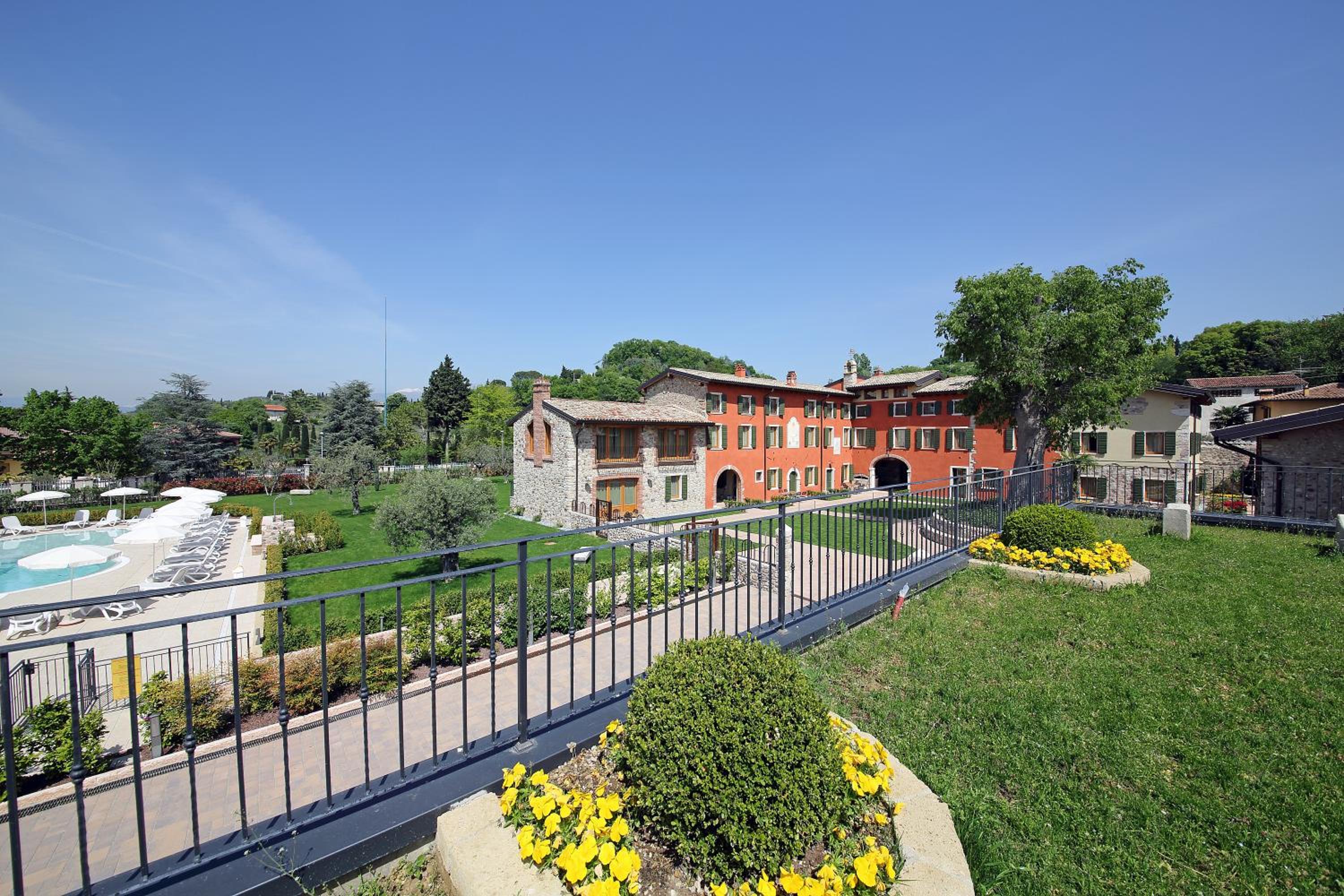 Indulge in a peaceful retreat at Residence Borgo Mondragon, just 2 km from Lake Garda. Relax by the outdoor pool surrounded by picturesque gardens.