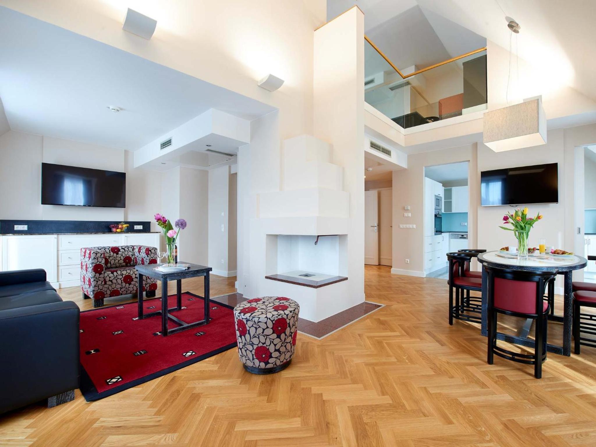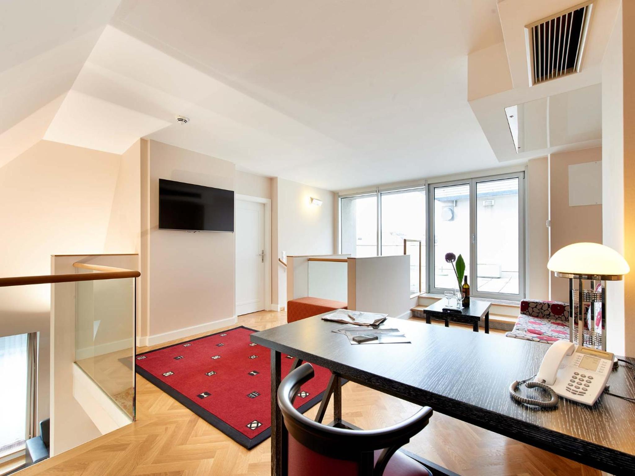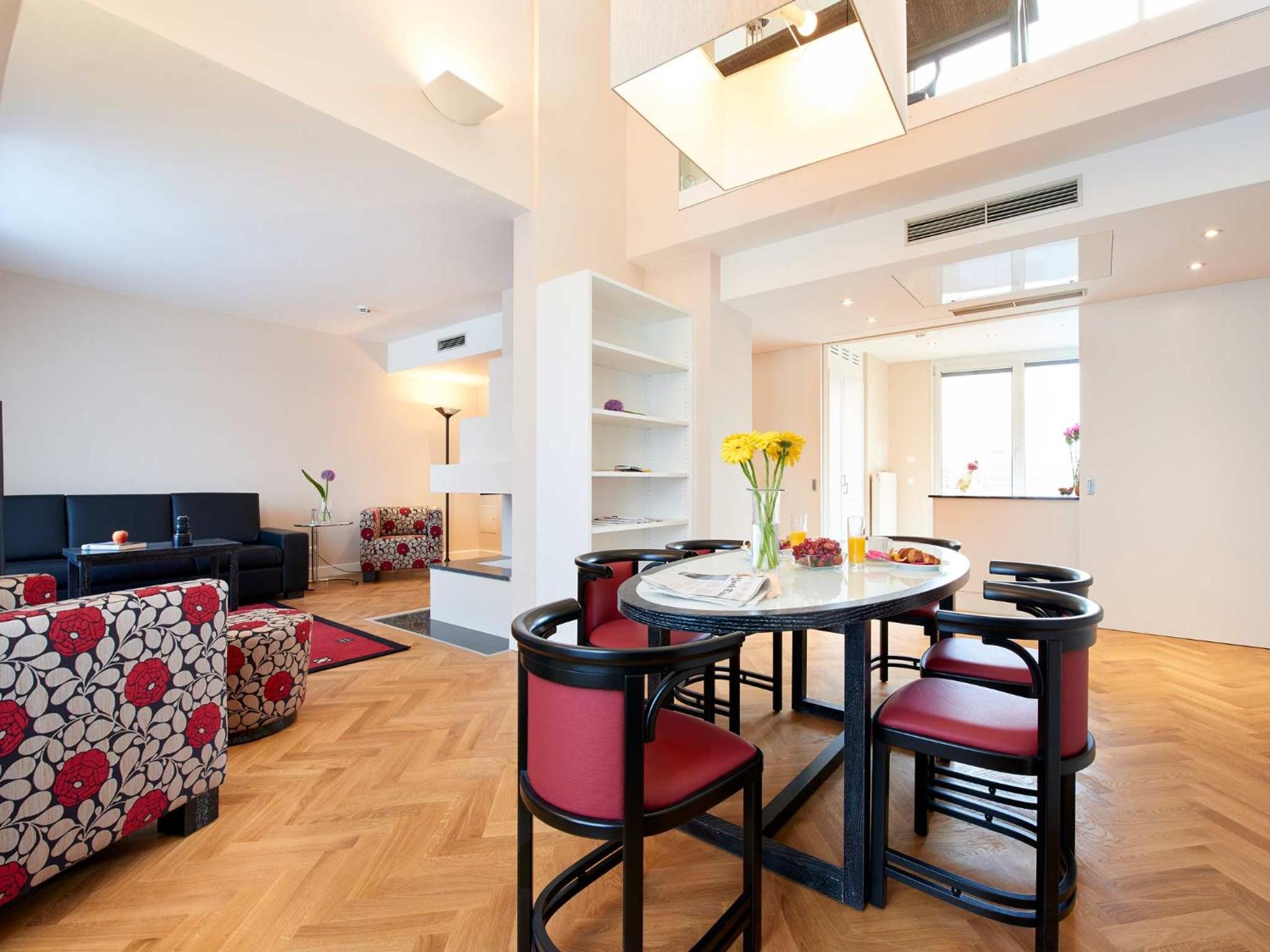 清潔で広い室内。比較的静かな部屋。個別空調。最低限の調理器具が備わっている。シュテファン広場、国立歌劇場等まで徒歩圏内。地下鉄駅から比較的近い。レストランや商店が豊富にある。チェックイン時間より早めに到着したが少し待って部屋に入れてもらえた。