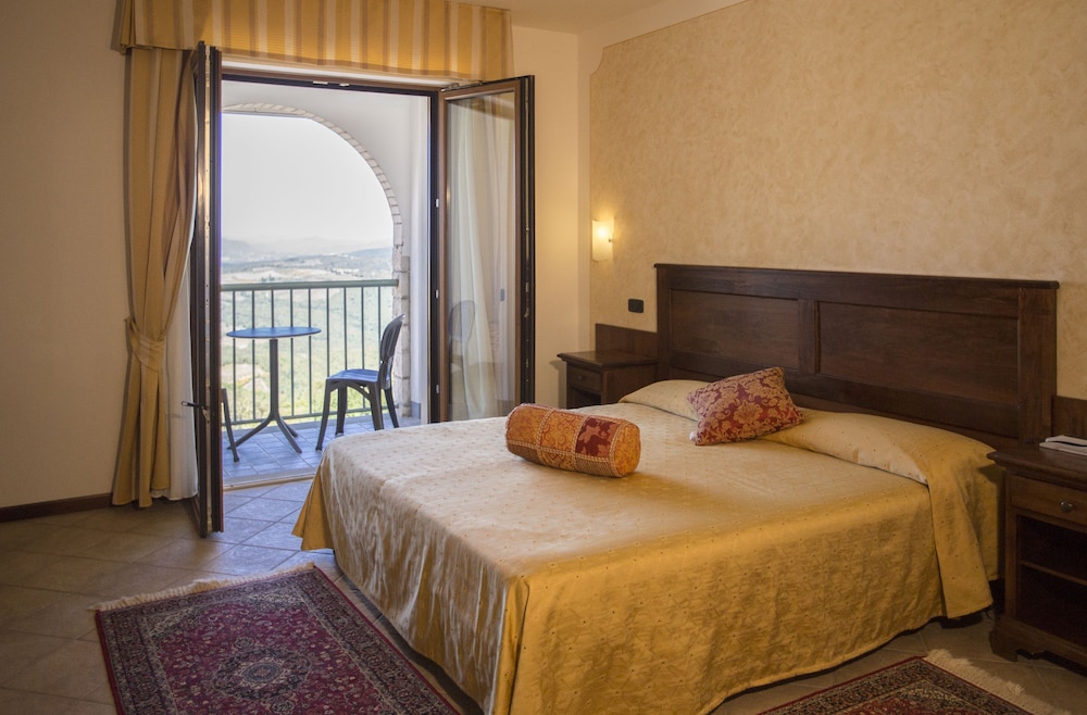 L'hotel offre un discreto comfort ma ha bisogno di un lifting generalizzato, la reception al contrario delle camere non da idea di essere cosi pulita, i tappeti e la moquette in tutto l'albergo hanno bisogno urgentissimo di essere sostituiti, la nostra camera era abbastanza piccola e con una doccia cosi piccola da essere impraticabile, la piscina è quasi completamente abbandonata a se stessa e la posizione dell'hotel situato a 1,3 km di salita ripidissima dal paese costringe a prendere sempre l'auto per spostarsi. Il personale dell'hotel sempre gentile e disponibile e la colazione variata e abbondante mitigano un po' le mancanze sopra descritte, se l'hotel allestisse una navetta per il paese sarebbe un gran servizio. Voto generale 5.