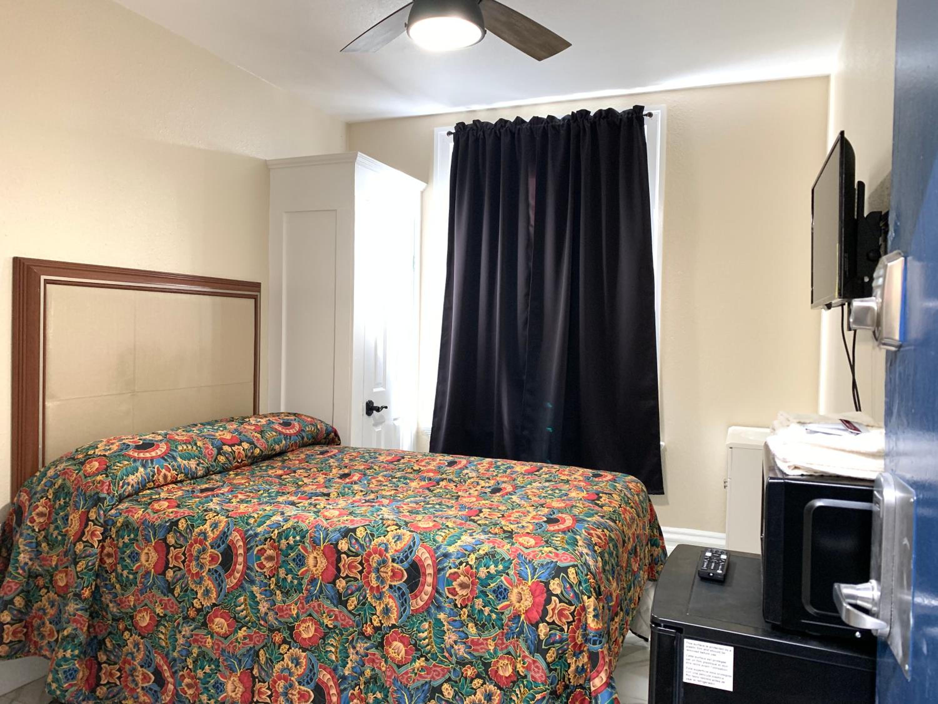 Location of place is in the worse part of town, don’t go there with family and children people in the hotel smoking crack needles all over the places. It had NO A/C NO FANS. The two guys in the front desk, they don’t want to do anything, don’t bother to ask them for something because they don’t even move out of their seats. Recommendation or more somewhere else, for some reason the people that stays here are homeless people and drug addiction people. Place is dirty I even told the guy in the front desk the the share bathroom and the floor, were blood everywhere and his answer was “ Use another bathroom” he did not it even care, a day later the bathroom was still with blood. You get what you pay.