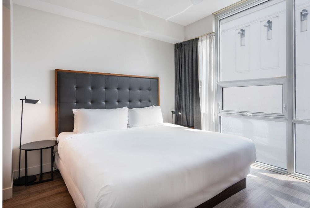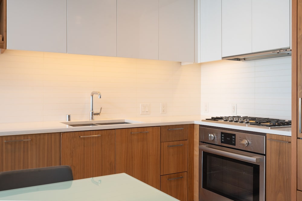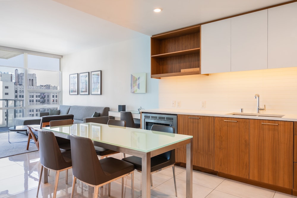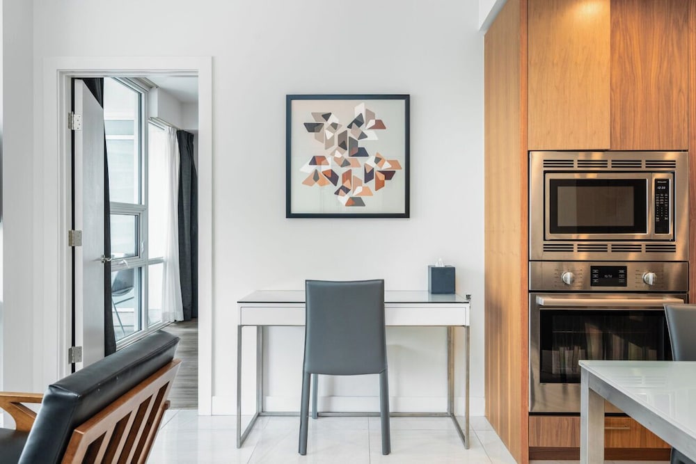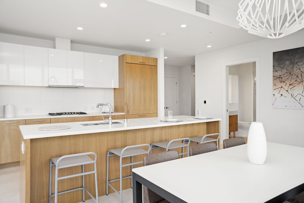 This property is very well appointed. The suite was bright and clean, and the kitchen had all the essentials. The gym, pool, basketball court and rooftop cinema club were all excellent. The location close to metro and transit makes it very convenient for everything.