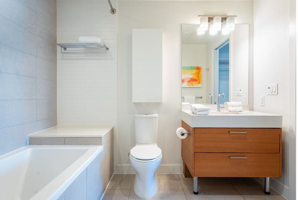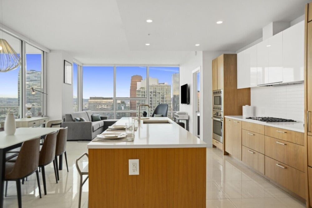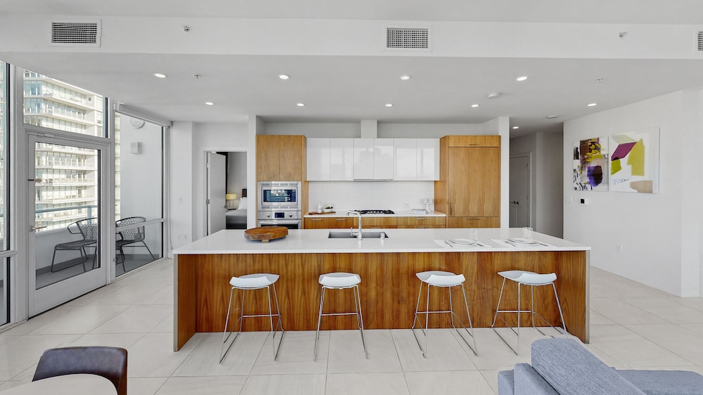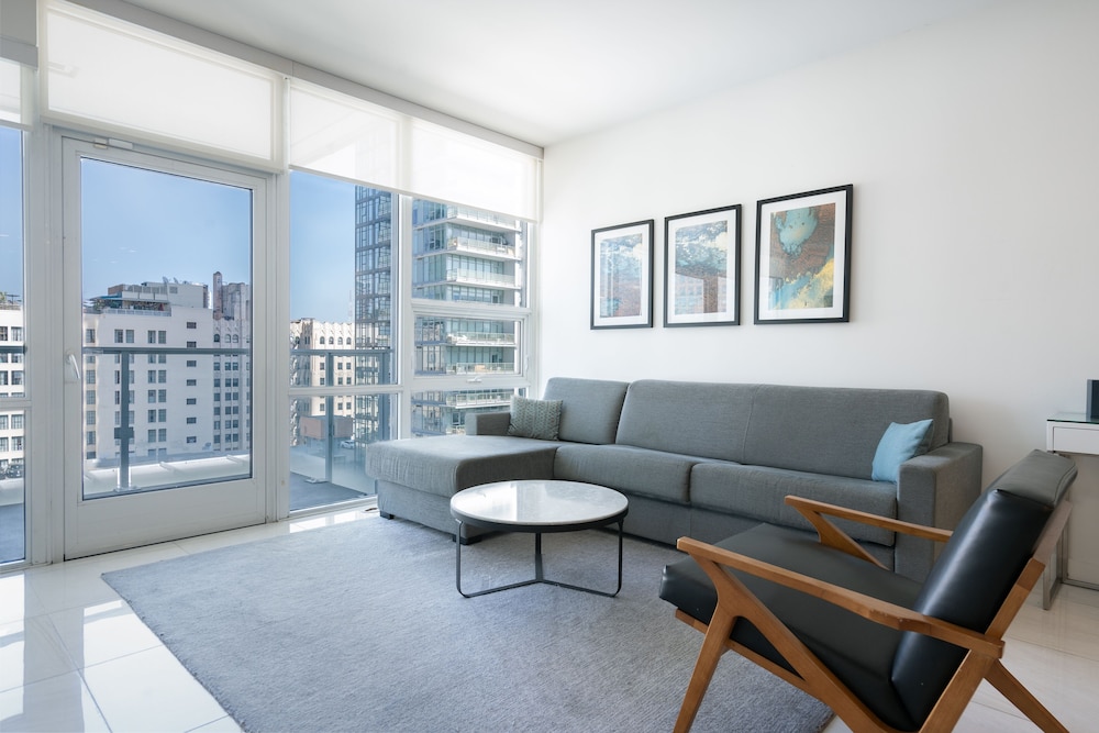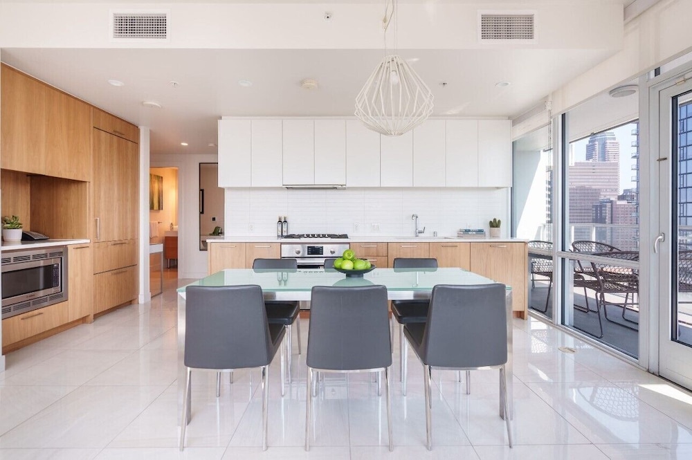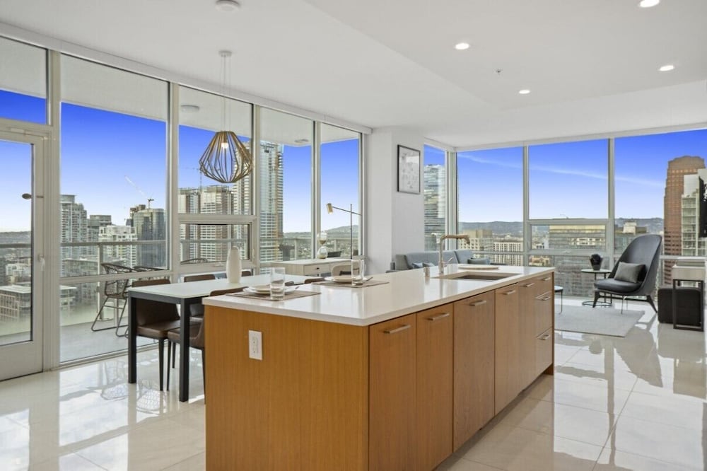 This property is very well appointed. The suite was bright and clean, and the kitchen had all the essentials. The gym, pool, basketball court and rooftop cinema club were all excellent. The location close to metro and transit makes it very convenient for everything.