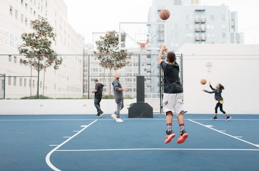 Pool basketball court kitchen space walkable
